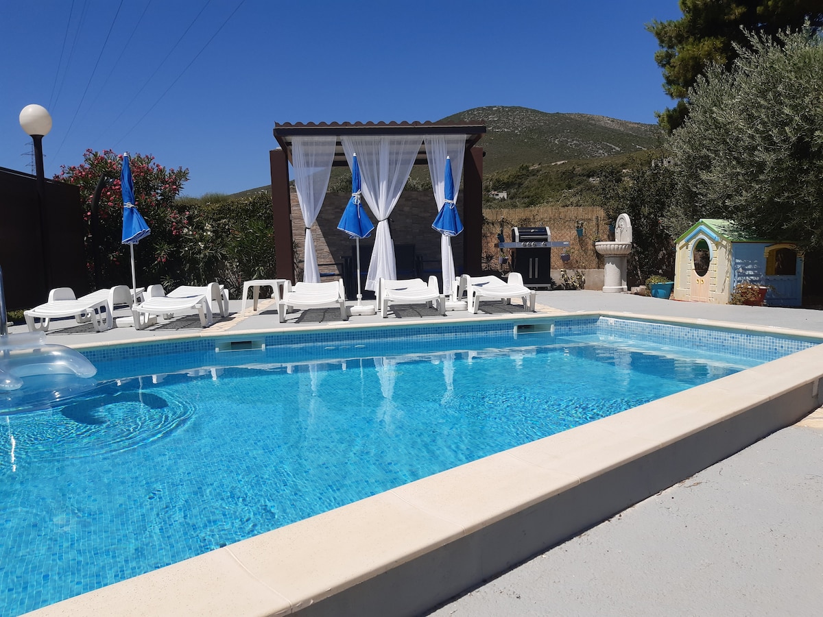¡VILLA ENTERA SOLO PARA TI ! VILLA ROMÁNTICA ubicada en un lugar verde ytranquilo, Dugopolje Nada en UNA PISCINA CLIMATIZADA yrelájate en el JACUZZI. Colócate bajo el sol,escucha el sonido de la fuente Parrilla bajo el árbol ¡Trampolín, fútbol de mesa,dardos, 5 bicicletas, TODO PARA TI ! Genial, todo está cerca: Sal de la autopista A1: 3 km LA PLAYA se llama ŽNJAN: 15 km. City SPLIT-16km Puerto de ferry de SPLIT para visitar las islas BRAČ,HVAR, VIS-19km ANTIGUA SALONA: 9 KM FORTALEZA KLIS(Juego de Tronos): 6km Perfectamente cerca,pero lo suficientemente lejos para tu paz y privacidad Disfruta de tus vacaciones.