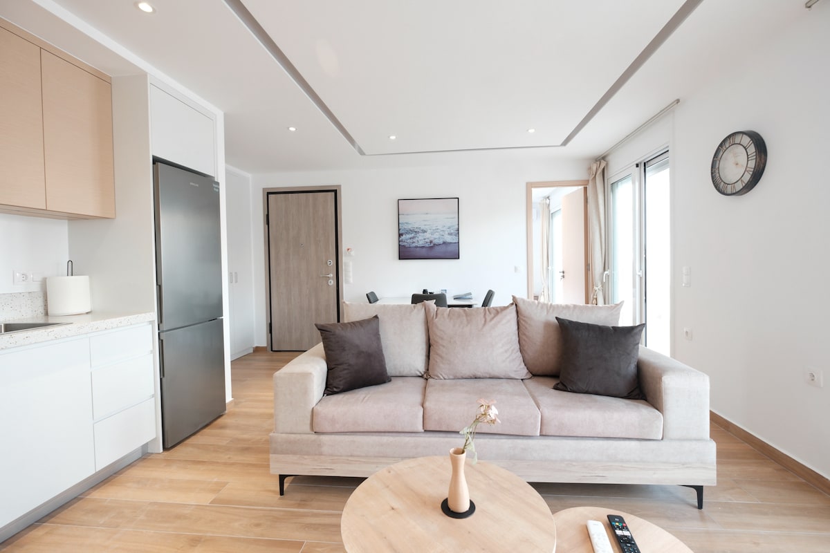 El apartamento está situado en el centro del Pireo y junto al puerto. Metro, conexión con el aeropuerto, transbordadores, tren, tren suburbano, estación de autobuses y tranvía, todo a menos de 100 metros. ¡Ubicación céntrica! El apartamento en el que te vas a alojar es nuevo y está totalmente renovado, con un dormitorio, cocina, sala de estar, 55 metros cuadrados y un balcón, todo ello con altos estándares arquitectónicos. Ubicado en la 5ª planta. ¡Es cómodo y lujoso para que tu estancia sea inolvidable!