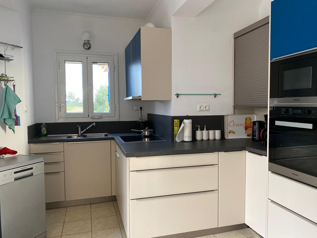 Nuevo apartamento elegante de 3 dormitorios (92 m²) con servicios y vistas ilimitadas al mar, ideal para personas que disfrutan de la naturaleza y buscan unas vacaciones relajantes, pero sin estar lejos de playas, bares, tiendas y restaurantes. El apartamento está situado en Kakorrevma-Chrani Messinias. Está rodeado de olivos y flores y se puede disfrutar de sus excelentes vistas al mar sin límites desde el gran balcón. La distancia al bar de playa Kivotos es de solo 2,8 km. Distancias similares a restaurantes y playas cercanas.