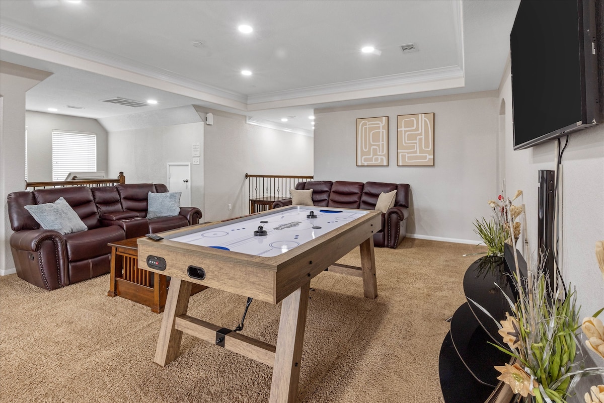¡Bienvenido a su escapada perfecta en la zona de Cinco Ranch, Katy! Esta espaciosa casa de 5 dormitorios y 3 baños y medio cuenta con un gran oasis en el patio trasero con patio, pérgola, barbacoa y fogata, ideal para relajarse y divertirse al aire libre. En el interior, relájese junto a la acogedora chimenea o disfrute de noches de cine con el proyector. Ya sea que esté aquí para pasar tiempo en familia, una escapada en grupo o simplemente para explorar los parques! A 5 minutos de Katy Mills