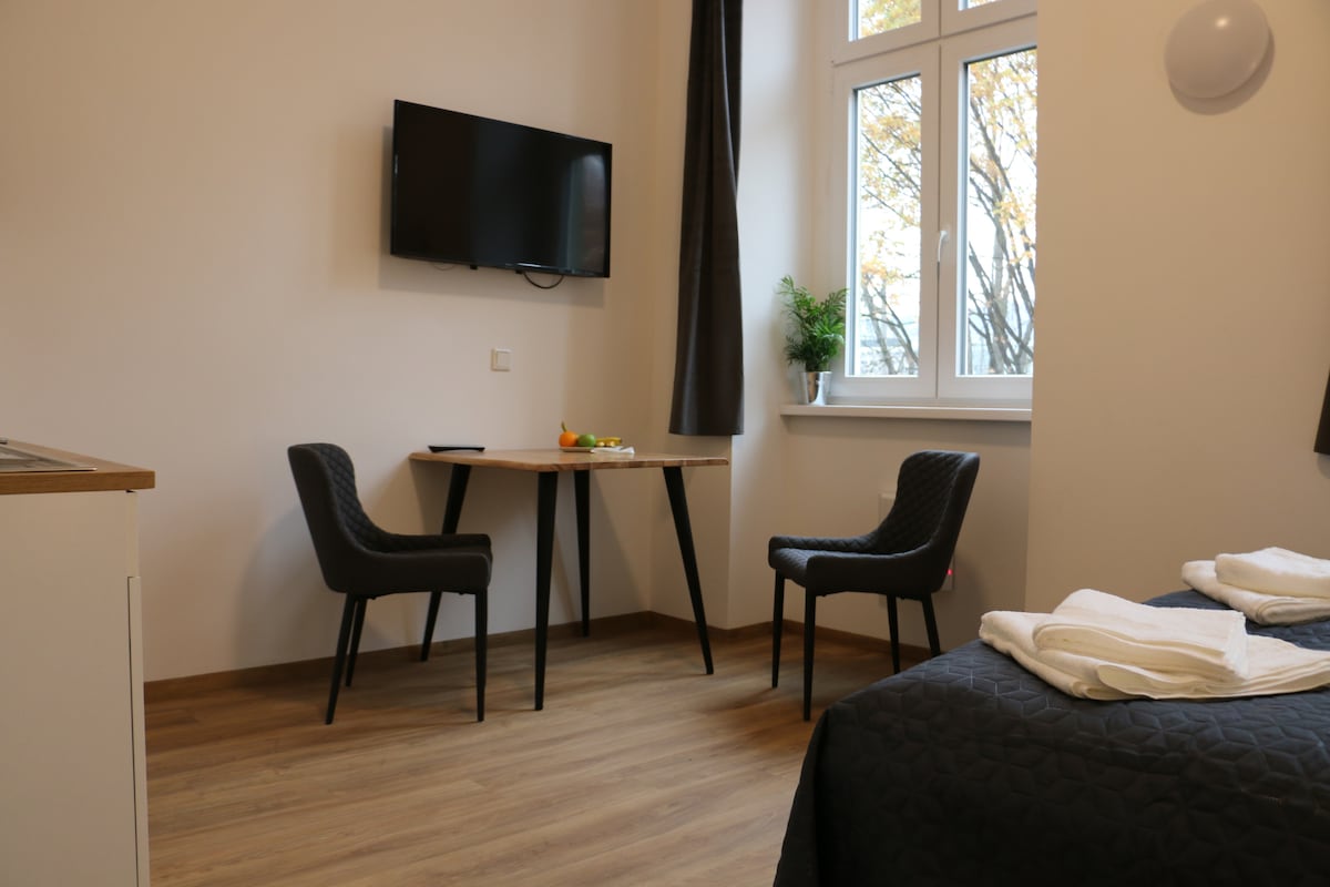 Apartamento luminoso reformado con una ubicación céntrica. El apartamento ofrece una muy buena opción para viajeros de negocios, así como para un agradable viaje a la ciudad. En pocos minutos se puede llegar desde el apartamento al teatro musical, al Jardín Botánico, a la catedral de María y a la calle principal. Después de un día agotador, el parque cercano te invita a relajarte y encontrar la paz. El transporte público se encuentra a 5-10 minutos a pie. La estación central de trenes está a 650 m.