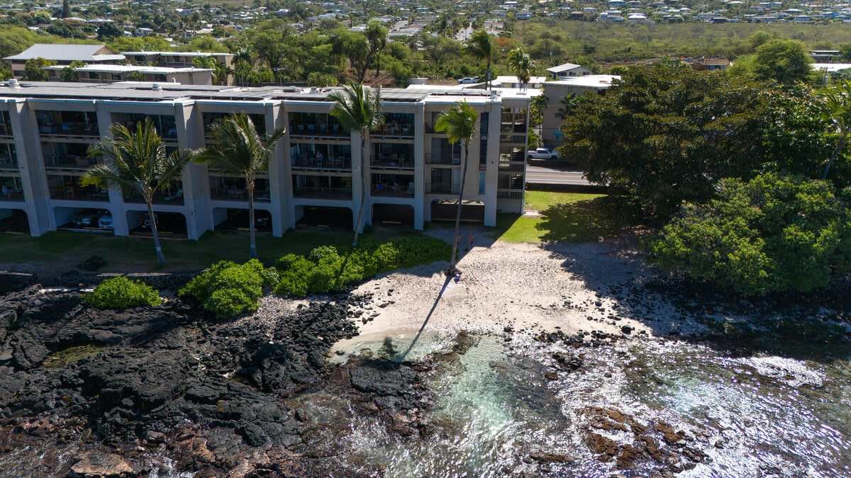 Apartamento de lujo, espacioso, recién reformado y justo en el océano, en un complejo boutique cerrado. Increíbles vistas desde el lanai, la sala de estar y el dormitorio. ¡Cerca de todo! A 1-2 manzanas de la playa de Honl, mercado de agricultores, restaurantes, bares y tiendas en Kailua Village. Nueva cama tamaño king y sofá cama tamaño queen con colchón de espuma viscoelástica para un máximo de 4 huéspedes. Piscina de agua salada climatizada frente al mar con ducha exterior y barbacoa comunitaria. Tranquilo; sin ruido de Ali'i Drive. Plaza de aparcamiento reservada. Aire acondicionado. Ascensor.