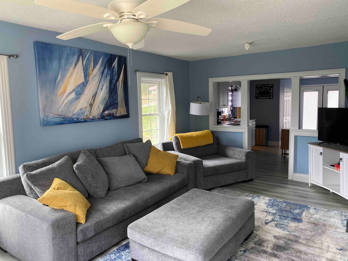 Enjoy a stay in this newly renovated Corbin home in a quiet residential neighborhood. 2 bedrooms and 1.5 bathrooms with a host of amenities including WiFi, 65” tv with cable and streaming services, a well-equipped kitchen, and more. Adjacent to Corbin High School, you may walk to public-access tennis courts and walking track. This location makes a great launching point to many area attractions such as: Corbin Arena Laurel Lake Cumberland Falls State Park Cumberland Run racetrack And more….