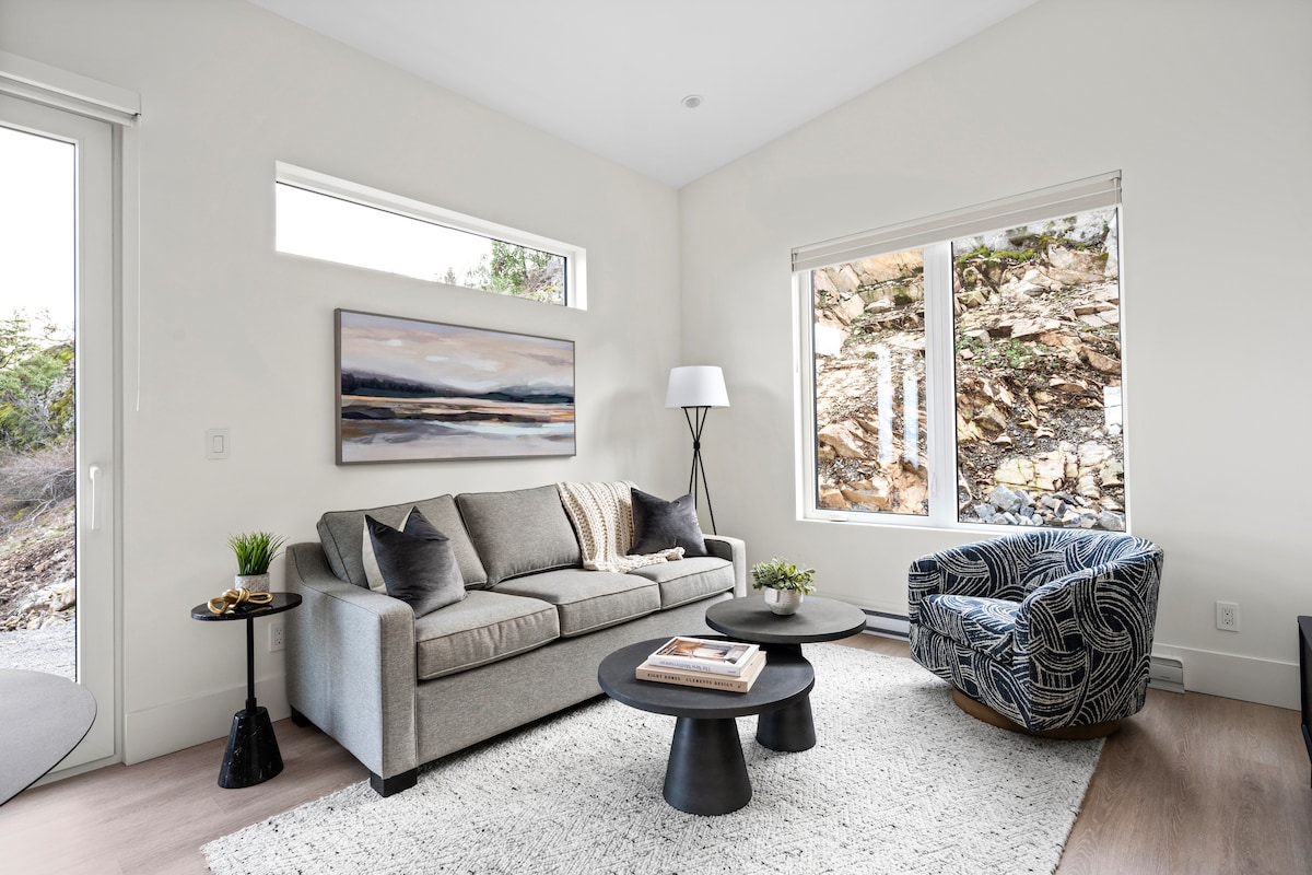 La cabaña para huéspedes se encuentra en Ucluelet, a pocos pasos del Wild Pacific Trail. La suite ofrece una experiencia privada, cómoda y de la costa oeste equipada con entrada privada, baño completo, sala de estar, cocina (sin estufa debido al reglamento local), entrada privada y terraza privada (con barbacoa con burrner lateral). Un gran ventanal con vistas a la selva tropical circundante. La cama tamaño queen está en un dormitorio tipo loft, al que se accede por una escalera (escaleras). Esta suite es ideal para parejas y personas que viajan solas.
