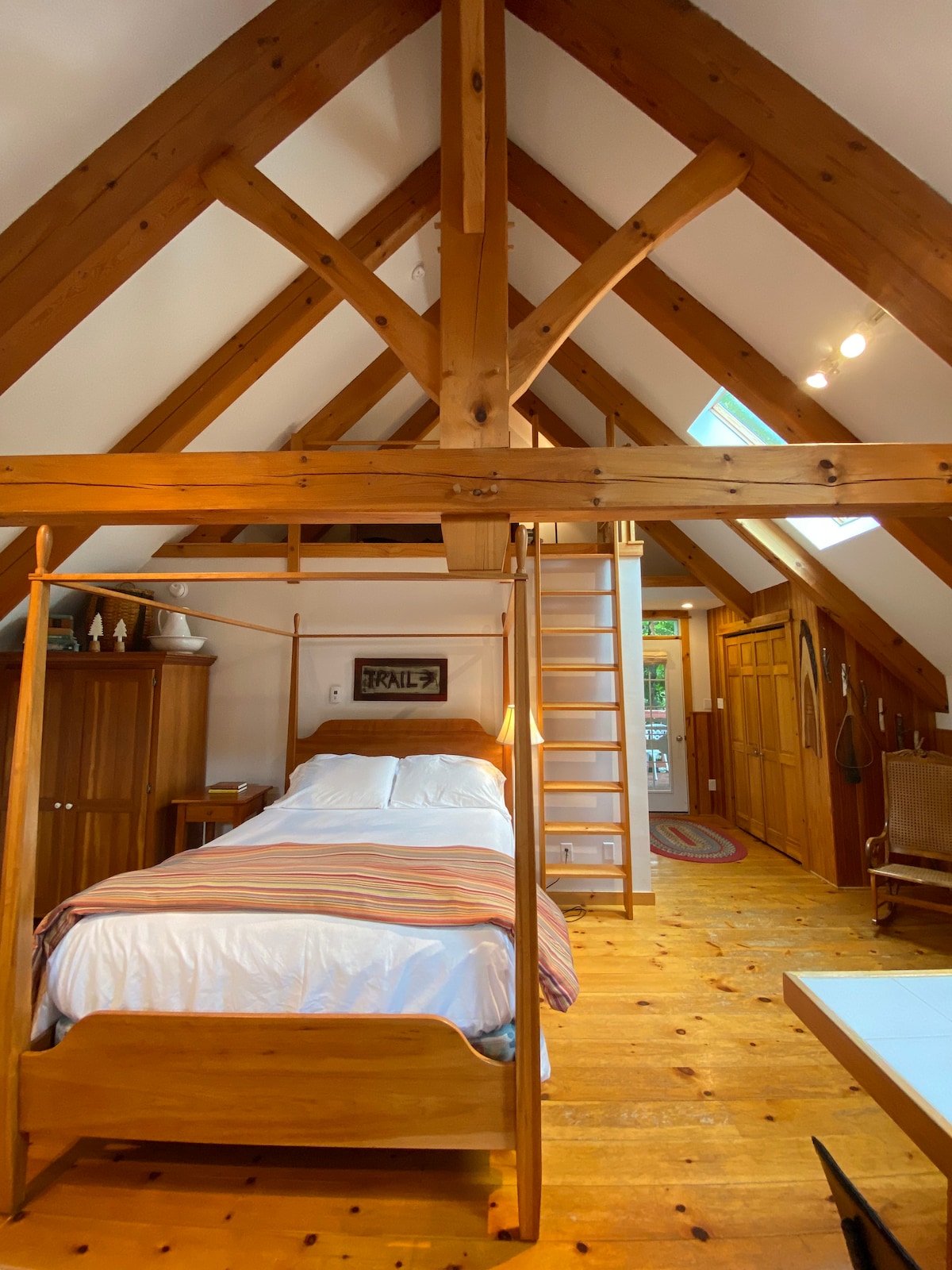 The High Peaks Artist’s loft is a converted mechanics shop located conveniently right in Keene. The space has been decorated by two artists and includes original paintings and decorations. This is a generous studio space with a well-equipped kitchenette, bathroom with a shower, pool table, lounge area and large projection screen. When you are ready to turn in for the night, we hope you will enjoy the newly created sleeping loft. If the weather is nice there is also a fire pit for you to use!