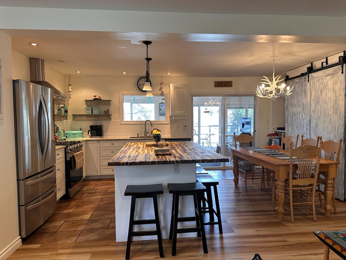 ¡Disfruta de todo lo que ofrece esta acogedora casa, incluida la salida después de la hora establecida a las 12:00 y todos los servicios de café/té (incluidos crema y azúcar)! Esta moderna casa tiene muchas comodidades, incluyendo 2 dormitorios, 1 baño, cocina totalmente equipada, aire acondicionado, TV, wifi, lavadora/secadora, patio delantero, patio trasero y una amplia sala de estar. Nuestro alojamiento se encuentra en el centro de Keewatin, a 5 minutos del centro de Kenora. Disfruta de las playas cercanas, el embarcadero, la tienda de comestibles Keewatin Place, LCBO, el parque infantil y los restaurantes.