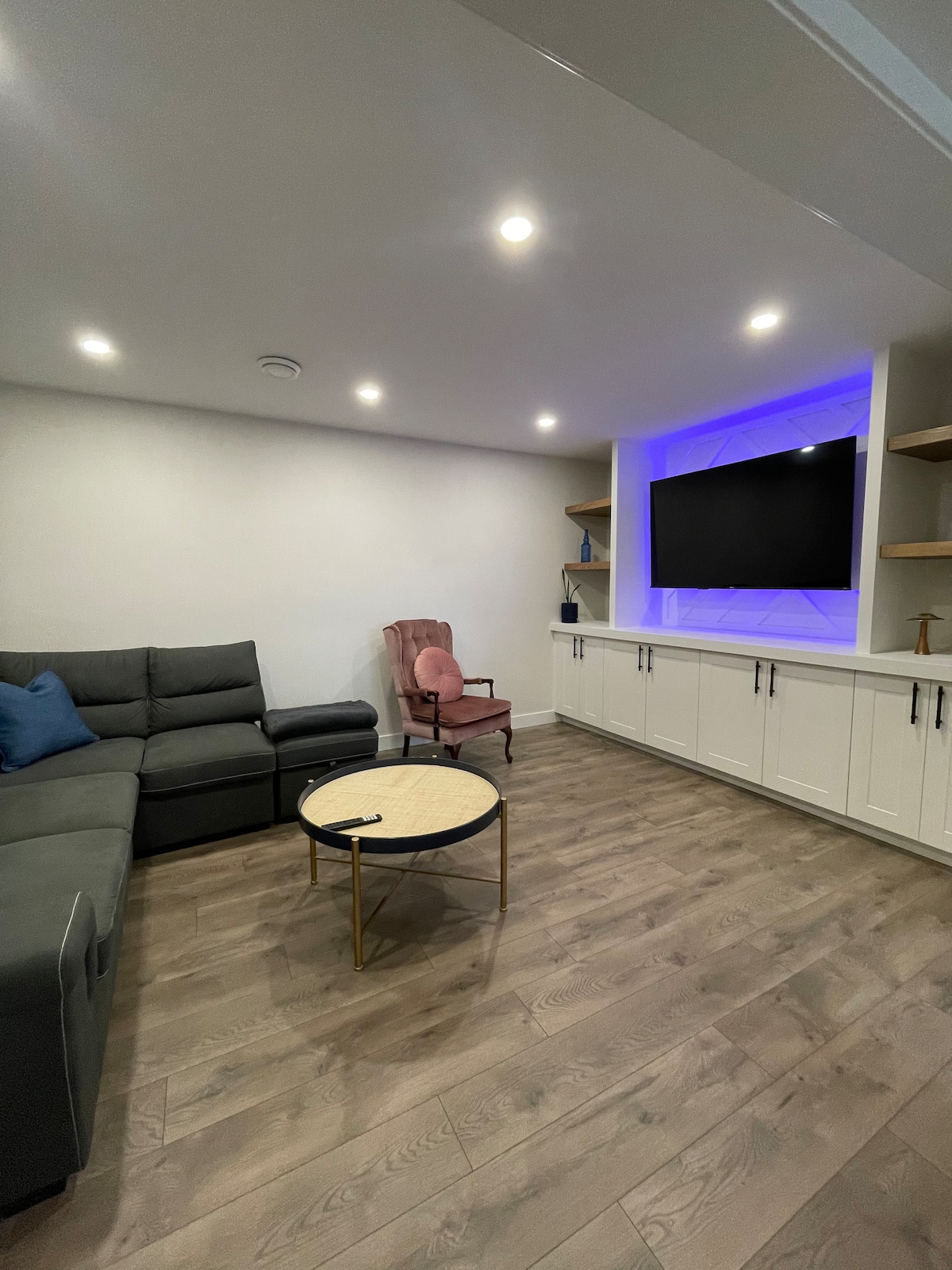 Spacious - sleeps 8 (4×2) comfortably. Clean, bright, NO stairs. 2 bdrm + queen folding matress + queen hide a bed, 4 piece bath, laundry, full kitchen/ dining - cooking facilities but NO range. 55" tv - Netflix, Prime, Roku, Tubi, You Tube etc. 1000 sq ft. of clean, quiet, comfort! Fully stocked kitchen with various: condiments/seasonings/spices. We offer complimentary fresh ground coffee, flavoured creamers, tea, fruit juice, cereal bars and fruit snacks for your morning growlies ☺️