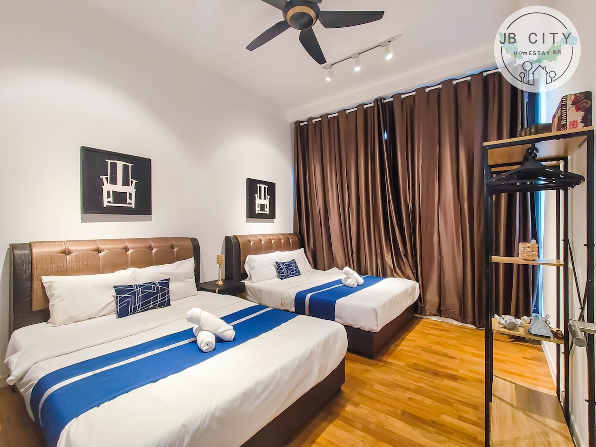 Nos ubicamos justo encima del centro comercial Paradigm Mall JB, con acceso directo al centro comercial desde el vestíbulo del condominio. Nuestra unidad viene con 3 dormitorios y 2 baños que pueden alojar hasta 5 huéspedes. Nuestro espacio está equipado con lo último en tecnología inteligente para el hogar, que incluye cortinas inteligentes, iluminación inteligente y un televisor de pantalla de cine con un proyector para la mejor experiencia de entretenimiento. Todos los aspectos de tu estancia serán cómodos y convenientes.