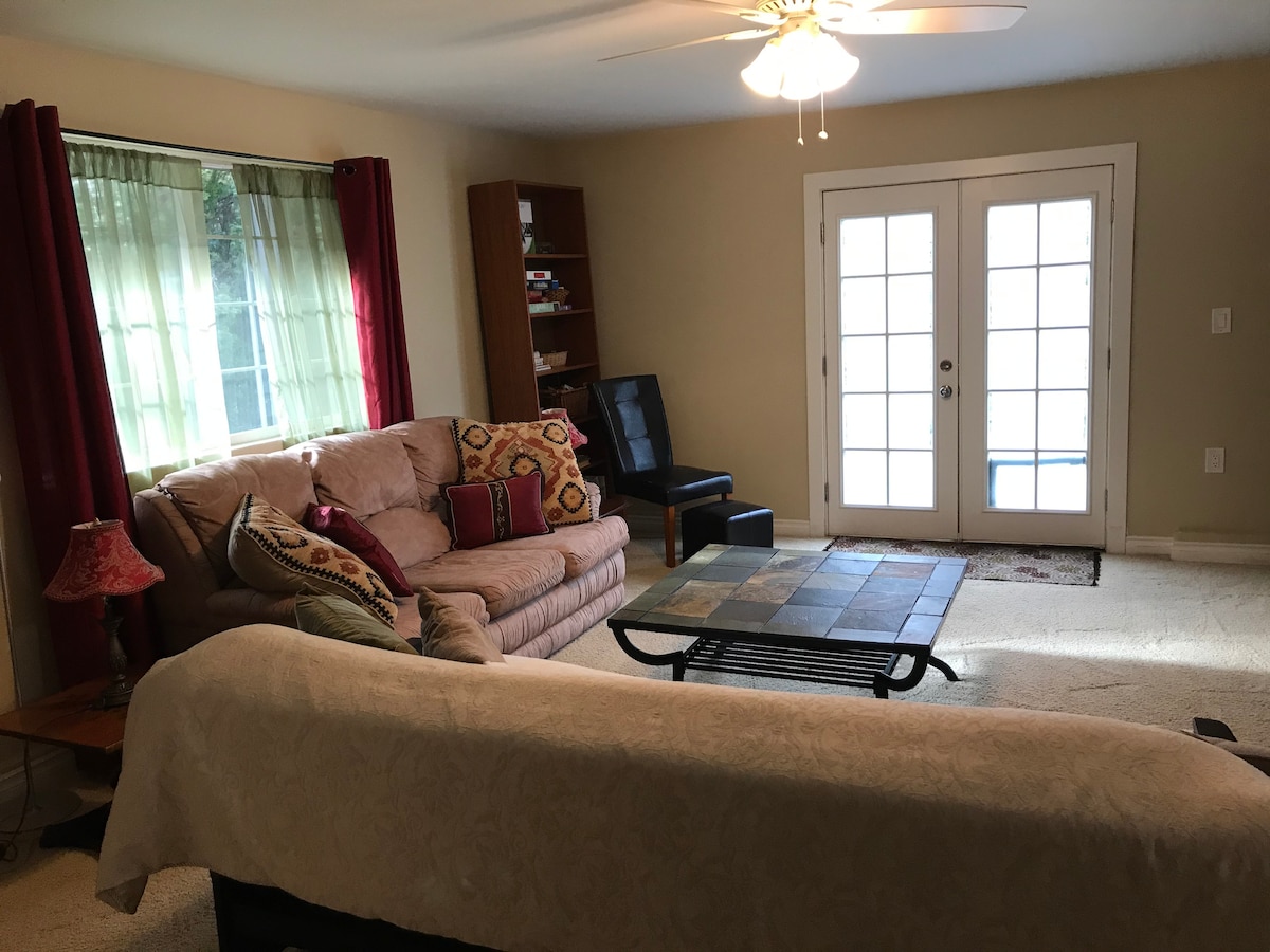 Amplia y acogedora, esta sala de estar totalmente equipada cuenta con una entrada segura y separada de tu propio jardín y patio. El espacio interior de 700 pies cuadrados tiene un acogedor área de descanso/dormitorio inferior con una chimenea de gas. Todas las comodidades se proporcionan en la cocina adyacente totalmente equipada y en el baño de 3/4 con ducha forrada de azulejos. Aire acondicionado central instalado recientemente. La privacidad y la soledad aseguradas con medidas adicionales tomadas para aislarse del resto de la casa. Por favor, no se admiten mascotas ni fumadores. Gracias.