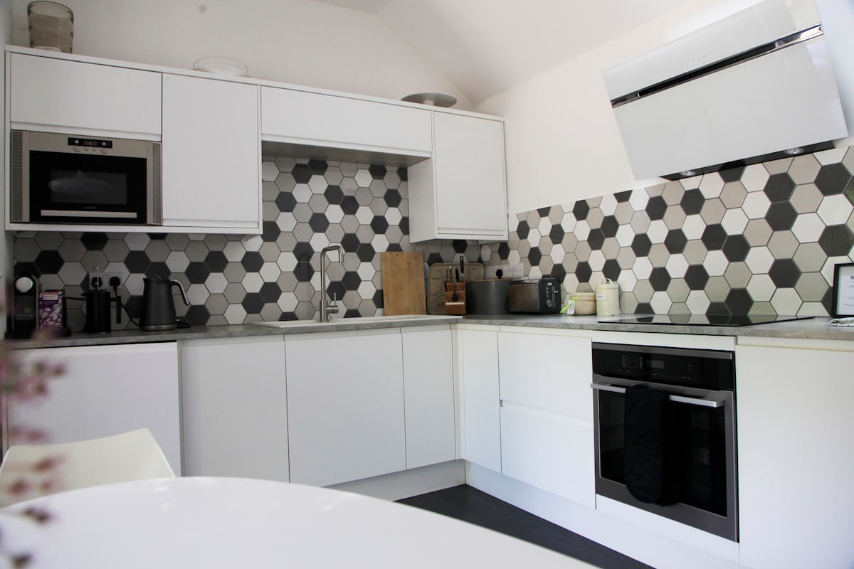 Este lugar inolvidable es de todo menos ordinario. Es The Oaks Retreat, GANADOR de los premios Paris Design 2024 "mejor interior de hospitalidad", un Airbnb a medida inspirado en la arquitectura ubicado en la ciudad costera de Whitstable. El Acorn Lodge es un refugio de 1 dormitorio tamaño king totalmente personalizado con acabados de alta gama. Debe ser visto en persona para ser completamente apreciado. Nuestra área de bienestar está equipada con una sauna de troncos, una inmersión en frío y una ducha al aire libre.