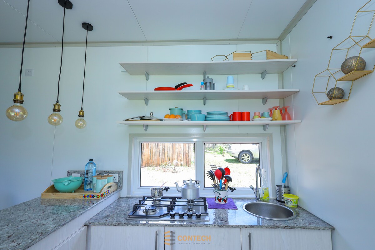 ¡Tu estudio soleado en un contenedor de transporte! Parada perfecta para viajeros solitarios, ya sea por negocios o por placer Convenientemente ubicado a solo 30 minutos del aeropuerto, el espacio está a poca distancia del Parque Nacional de Nairobi, el Centro de Jirafas, centros comerciales, restaurantes y sitios culturales. Ofrece total privacidad y comodidades modernas, en el corazón de la frondosa y segura Karen Disfruta de una cama tamaño queen, una cocina pequeña surtida, wifi rápido, ducha con agua caliente, espacio en el jardín, acceso a la lavandería y conserje en el lugar. Descuento para estadías de 7 días o más