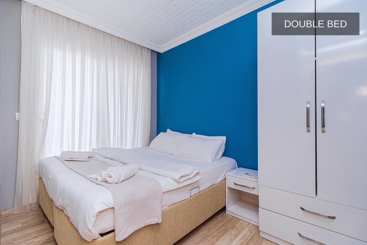Está muy cerca del aeropuerto, la estación de autobuses, el transporte público y el tranvía en el centro de Antalya. Está a solo 2 km de las mundialmente famosas playas de Konyaalti. Apartamento: consta de 1 dormitorio + 1 sala de estar + mini cocina y baño privado. Máximo 2 adultos + 1 niño permitido Centro comercial Erasta: 1 km - 2 minutos Weaving Park: 1 km - 2 min Tranvía: 1 km - 2 minutos Playas de Konyaalti: 2 km - 5 minutos Acantilados: 6 km - 8 minutos Terminal de autobuses: 7 km - 10 minutos. Kaleiçi: 12 km - 13 minutos Aeropuerto : 18 km - 20 min