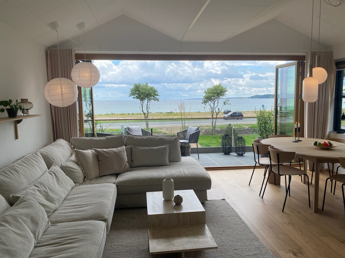 A tiro de piedra de la playa se encuentra el apartamento de vacaciones de nueva construcción. Desde la amplia terraza hay una magnífica vista panorámica de la playa y la bahía. En un día despejado, el puente del Gran Belt se ve claramente en el horizonte. Uno de los dormitorios está equipado con una sección de cristal separada que da al salón, para que pueda disfrutar de las vistas al mar hacia el este sin levantarse de la cama, y tiene su propio baño. Además, hay un dormitorio más, una habitación con sofá cama y un baño. Las camas están hechas y hay paños de cocina, paños de cocina y toallas.