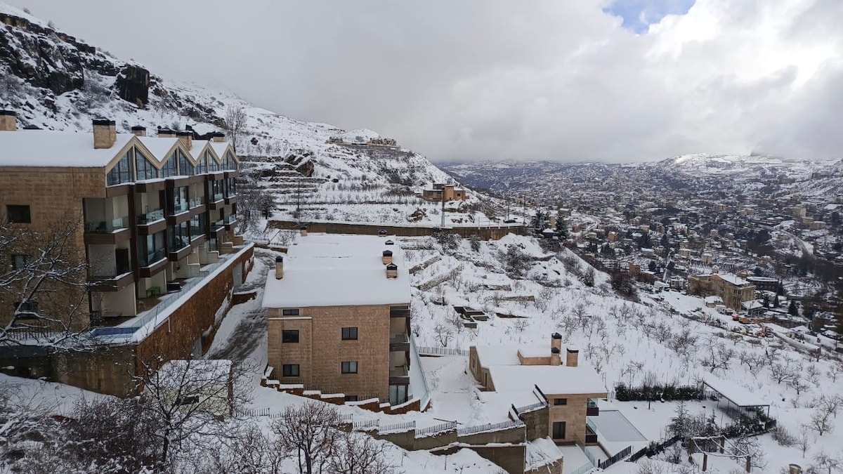 Lugar tranquilo. Retiro tranquilo, 4 piscinas en medio de la naturaleza a 1500 m de altitud, a 45 minutos de Beirut, 2 master BR+BigTerrace . Dúplex, 2BR + Terraza = (100 +75 metroscuadrados) El chalet se encuentra dentro de Redrock, una comunidad cerrada ecológica. Convenientemente ubicado a solo 2 kilómetros de las pistas de esquí de Faqra y el club Faqra, a 7 km de Faraya, a poca distancia en auto del templo de Faqra, el puente natural de Kfardebian, la estación de esquí de Mzaar, la estatua de San Charbel, la presa de Chabrouh, decenas de restaurantes y otros lugares de interés