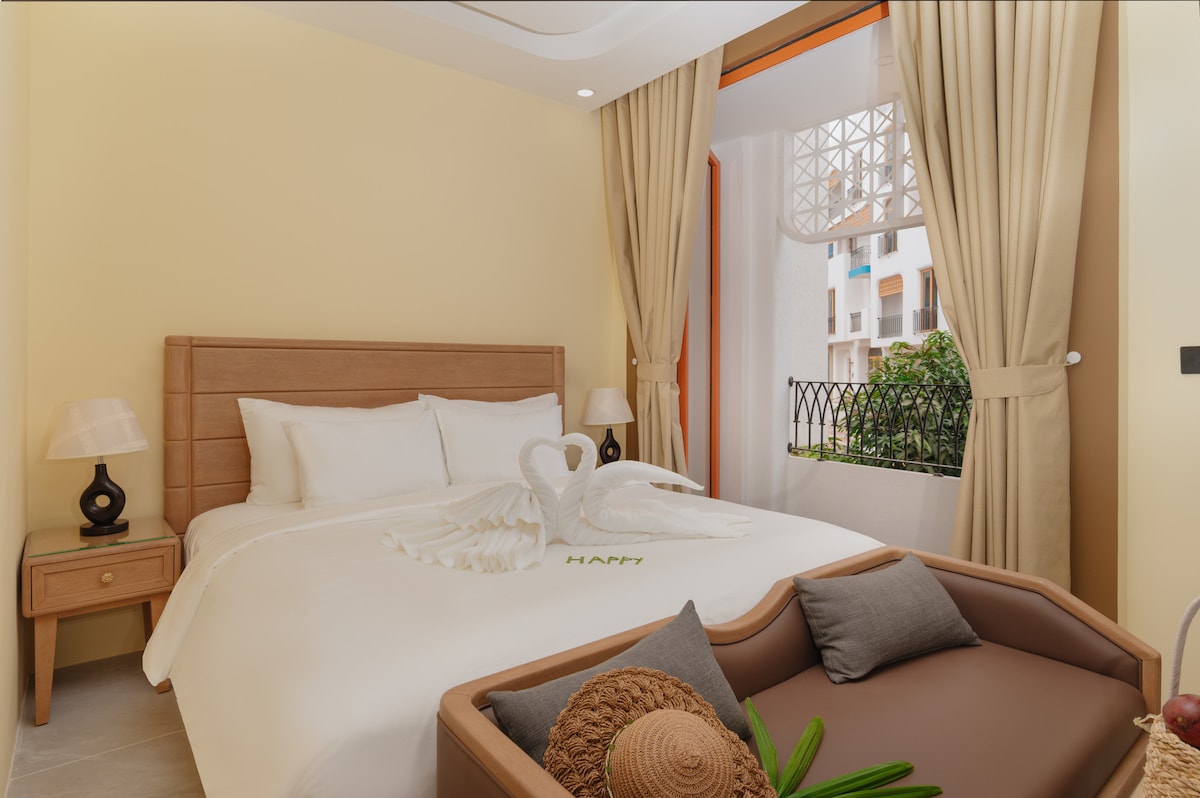 Retiro en una habitación cerca del mar - ubicación: a más de 90 metros del mar, con una piscina comunitaria muy grande que corre al mar, ubicada en el complejo turístico Phu Quoc Marina. - Hay un autobús gratuito al centro, la isla norte, hay un tranvía gratuito a TR mart. - Servicio de limpieza gratuito una vez a la semana para estancias largas. Esperamos que tengan una estancia inolvidable aquí. Es un placer hospedar