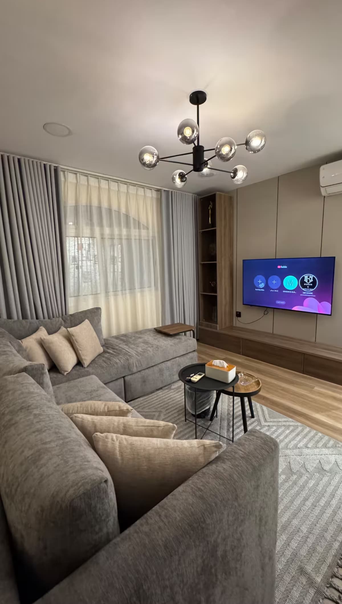 Ubicado en el corazón de la ciudad de Al-Khobar, con impresionantes vistas cerca de Prince Turki Street, Pavilion Complex y Hessa Square, diseñado en colores relajantes y amueblado con muebles modernos. Hay una pantalla de 75 pulgadas y suscripciones a Netflix y Shahid para ver películas y partidos. Se caracteriza por su amplio espacio y total privacidad con una entrada inteligente. Le deseo una estancia feliz y que Dios le bendiga.