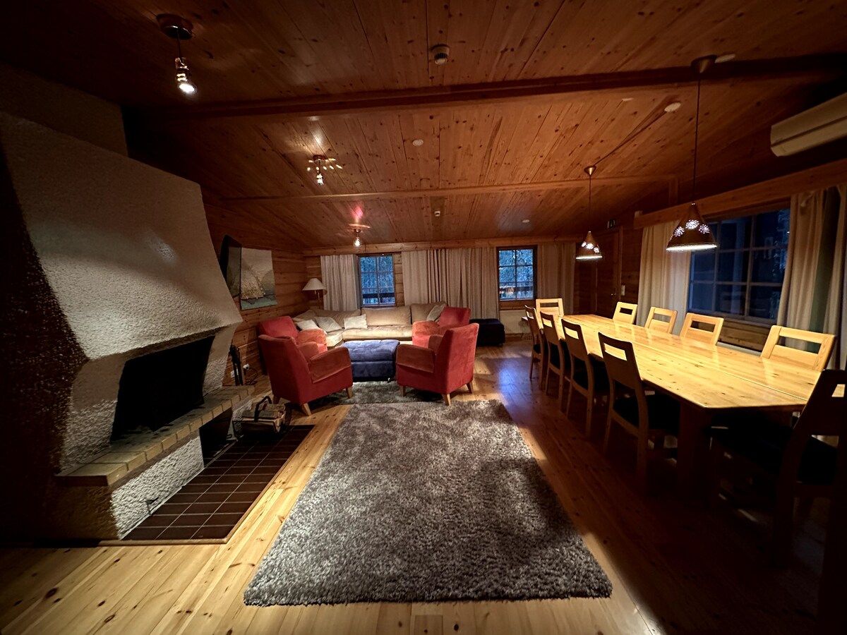 Disfruta del encanto de Laponia en esta casa de troncos totalmente renovada y acogedora, perfecta para familias o grupos. Lujosa y con una ubicación ideal, ofrece impresionantes vistas al Ártico y está a poca distancia a pie de las tiendas, restaurantes, actividades y los mejores lugares para ver auroras boreales de Saariselkä. También se puede llegar fácilmente en avión o tren. ¡Estaremos encantados de ayudarte con todos los aspectos de tu estancia! Incluye sauna, dos chimeneas, wifi, Netflix y plaza de aparcamiento.