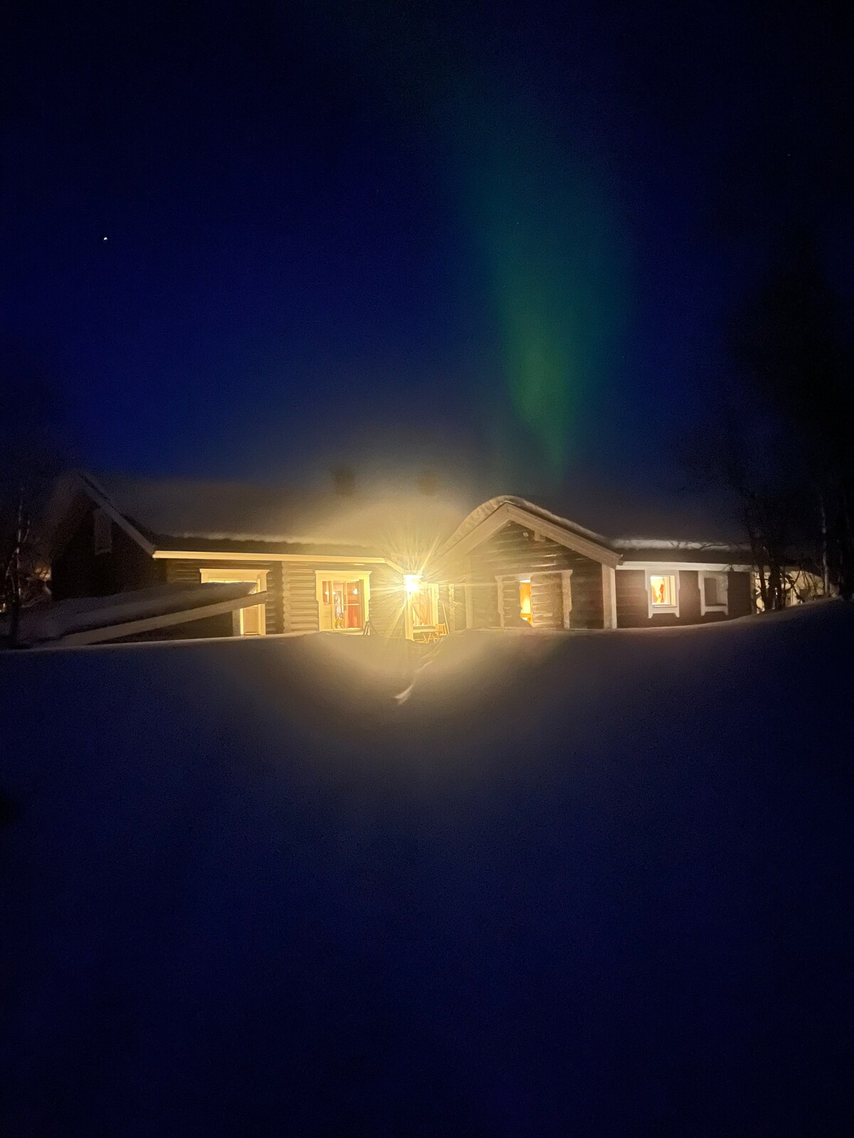 Cabaña junto al lago con vistas increíbles a la aurora boreal