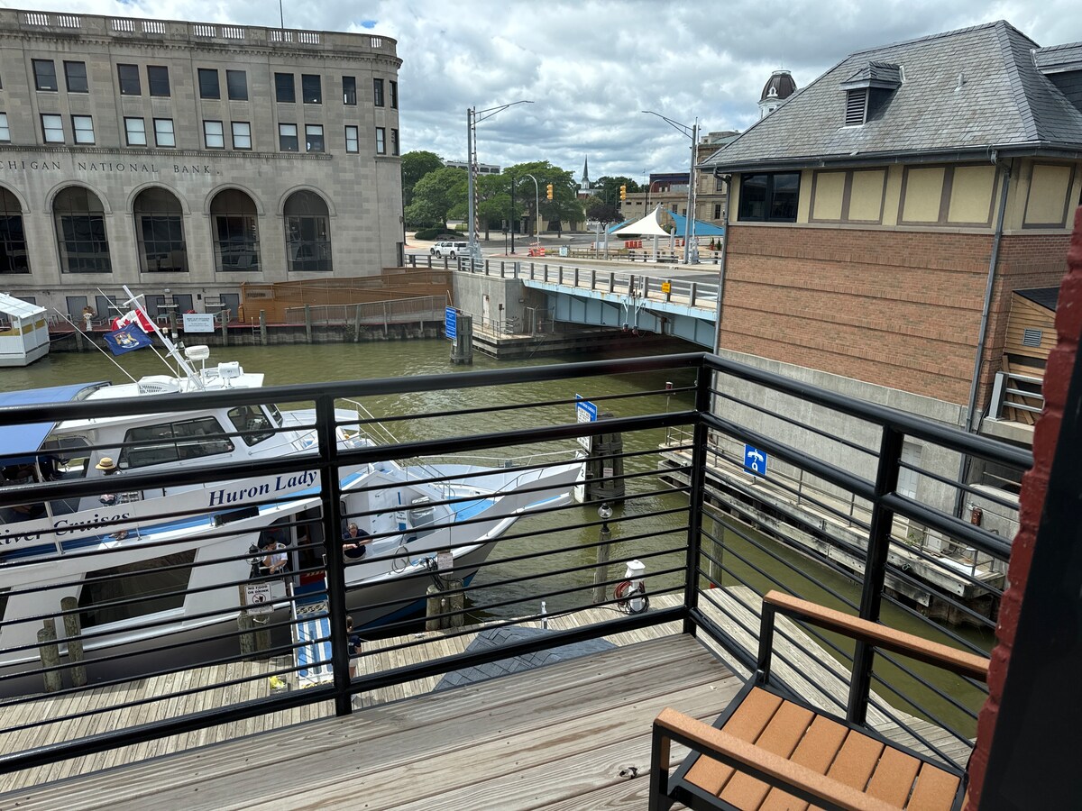 Tenemos una decoración ecléctica, con un gran balcón con vistas al río St. Clair. Simplemente relájate y observa cómo pasan los cargueros y los barcos de recreo. Si buscas almuerzo o una cena más elegante, estamos a pocas manzanas de Gars (con sus famosas hamburguesas n.º 1) y de la cervecería; The Fish Company está a poca distancia a pie con su nueva ampliación en las escaleras con un amplio balcón, y oh, ¿mencioné que tienen una gran comida? El Little Bar está a solo un pequeño trayecto en coche a unas 10 manzanas al sur de la ciudad, con increíbles comidas y bebidas. No se admiten mascotas
