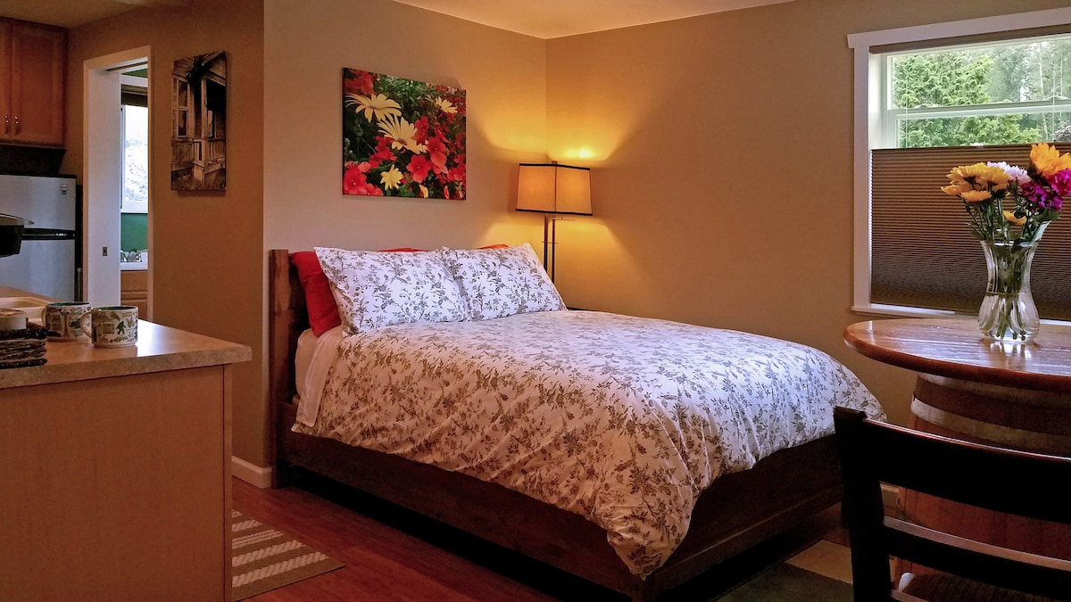 SuiteDreams awaits you! Relax at our private luxurious & cozy studio. Minutes to wineries & Chateau Ste Michelle concerts. Fast freeway access gets you to Seattle quickly. Exclusively yours; gated courtyard with firepit, patio deck with outdoor dining area. Unwind wearing cozy plush robes. Sleep deep on queen size memory foam mattress. Amenities: private full ensuite bathroom, work/dining bar, mini fridge, microwave, espresso maker, large screen TV, high speed internet, nearby nature trail.