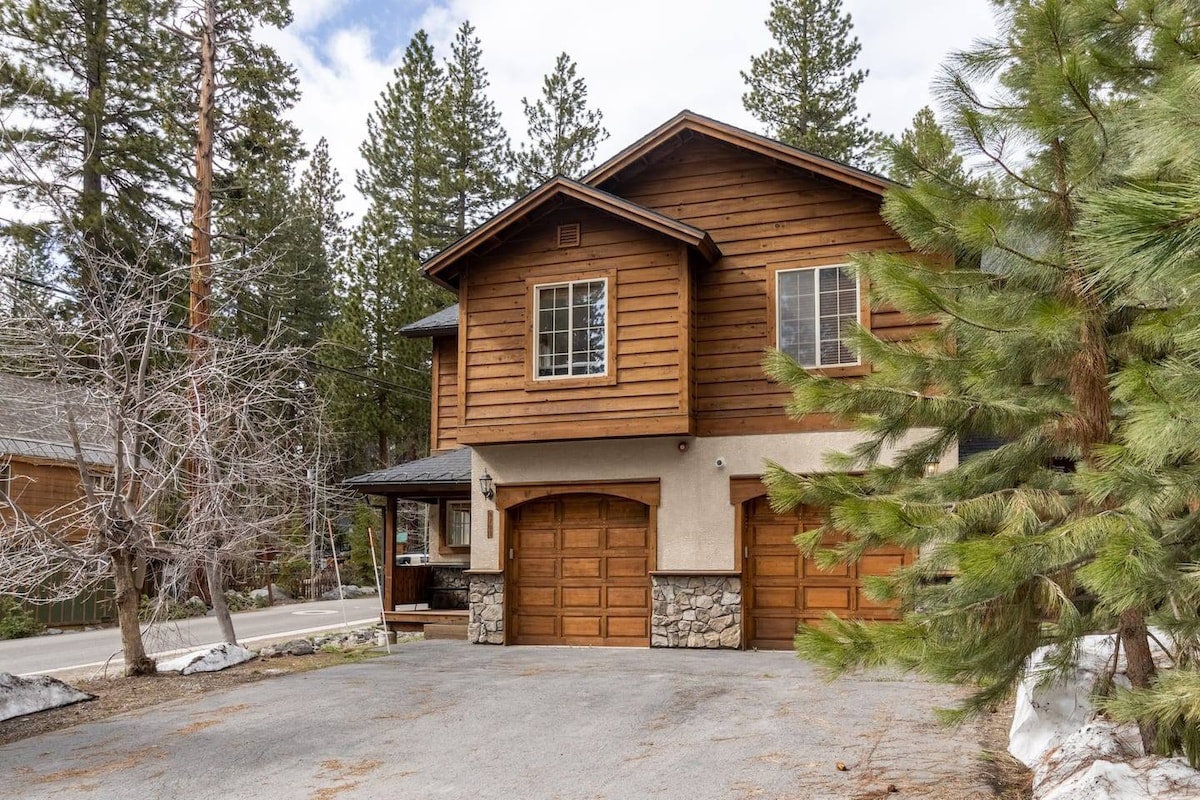 Disfruta de nuestra cabaña de nueva construcción a poca distancia a pie del lago Tahoe. Nueva bañera de hidromasaje y cargador de vehículos eléctricos en el garaje. Nuestra cabaña tiene capacidad para 9 personas y está totalmente equipada. La habitación principal cuenta con una cómoda sala de estar, chimenea y cocina abierta con zona de comedor. Cuatro dormitorios con mucho espacio para relajarse y disfrutar. Esta casa fue construida recientemente en 2023. Cada habitación tiene una terraza para disfrutar del paisaje de Tahoe. Convenientemente ubicado cerca de múltiples estaciones de esquí y a poca distancia a pie de la playa.