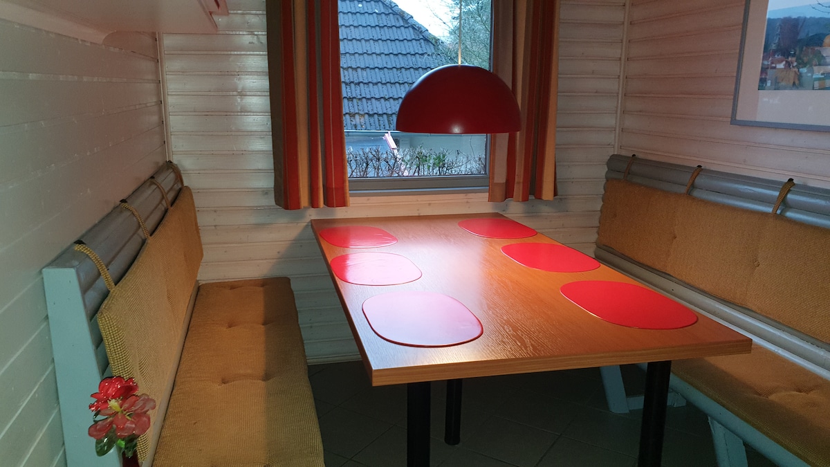 La casa de vacaciones (pueblo 4, casa n.º 17) impresiona con muebles elegantes y con estilo, comodidades de alta calidad y conexión wifi gratuita. En un amplio espacio de 102 m², pueden caber cómodamente hasta 7 huéspedes de vacaciones, ideal para familias, parejas y amigos. La casa bien cuidada está ubicada en una parcela de aproximadamente 1.194 m² y ofrece una terraza aislada con unas vistas impresionantes al bosque. Aquí es donde el corazón de los amantes de la naturaleza late más rápido.