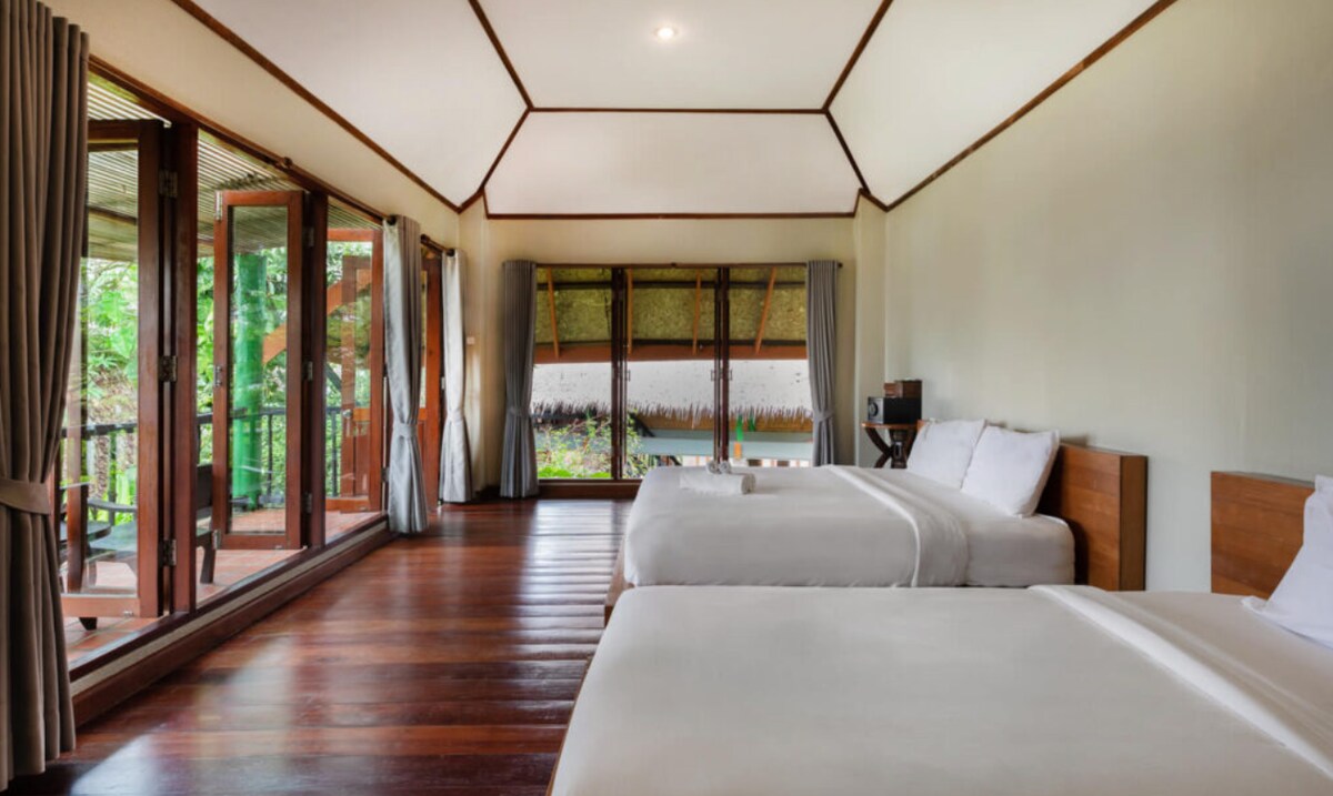 Este bungalow de estilo tailandés se encuentra a unos 300 metros de las dos mejores playas de la isla. Ao Suan Yai en el norte y Ao Kao en el sur. Los restaurantes y las pequeñas tiendas están a poca distancia. Tienes acceso a gimnasios, pabellón de yoga, campamento de Muay Thai y campamento de tenis y pickle ball también. También puedes disfrutar de nuestra piscina y espacio de coworking con buen acceso a WiFi.