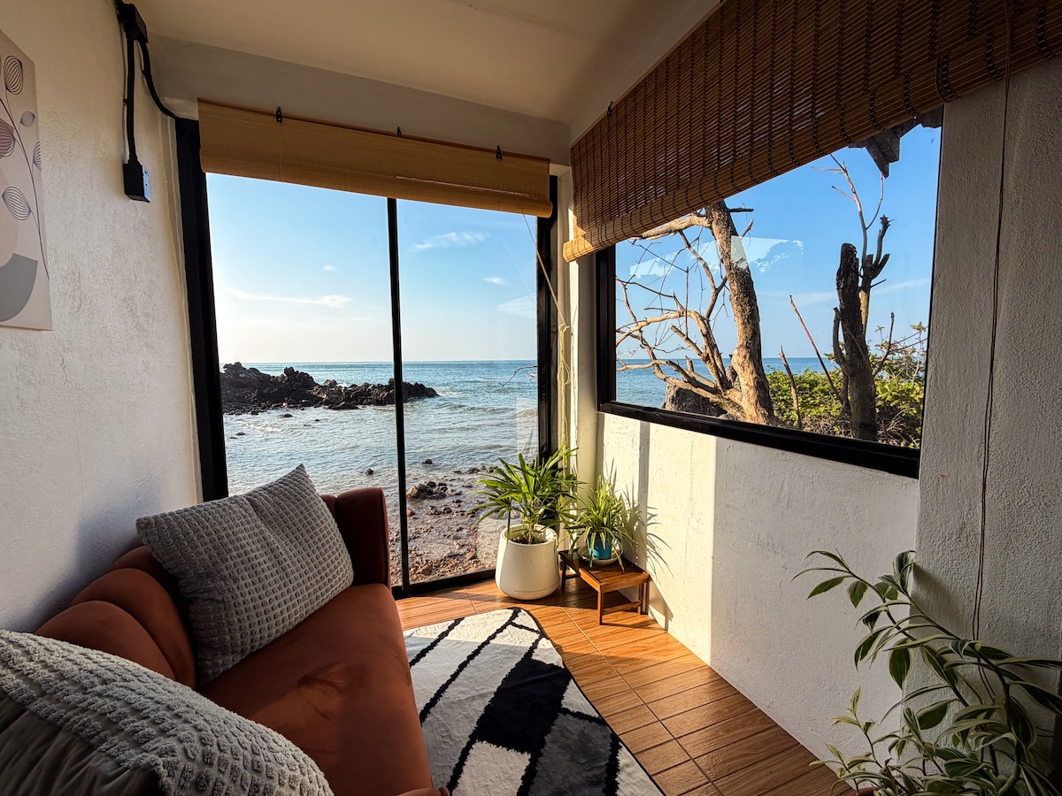 Nuestro alojamiento es una casa de bambú con un ambiente natural, con baño privado. Cada habitación ofrece una vista al mar y se encuentra en un lugar privilegiado para contemplar la puesta de sol. También contamos con un bar que sirve bebidas y comida, creando un ambiente acogedor e inspirado en la naturaleza. Servicios del alojamiento: • 1 cama tamaño queen • Baño privado • Ventilador