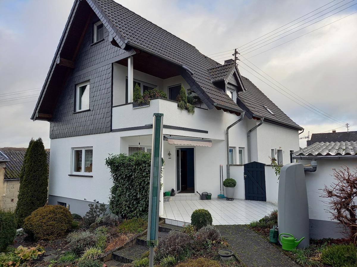 Amplio apartamento de 2 dormitorios en un adosado protegido. Céntrico pero tranquilo. A 3 minutos de la estación de tren. Hay una parada de autobús en la casa. A 5 minutos de la zona peatonal. A 30 minutos en coche del legendario Nürburgring. Un ambiente familiar y sin complicaciones te espera en una casa independiente. Ideal para parejas, viajeros solos, viajeros de negocios y familias. Aparcamiento gratuito en la calle.