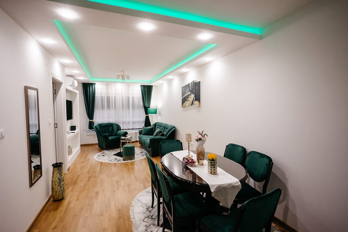 Apartamento de lujo "Zivanovic" está situado en el centro de Valjevo, en el 1er piso y es adecuado para 4 personas. 🏩 Totalmente amueblado con una cocina totalmente equipada,terraza y una habitación separada. La oferta incluye el uso de aire acondicionado, cable, wifi, lavadora y el uso de sábanas y toallas. 🚗 En el edificio hay un garaje subterráneo con ascensor