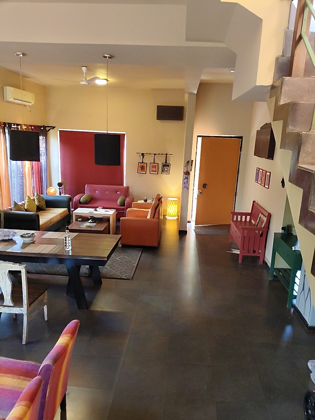 Nuestro alojamiento se encuentra en el centro de Newtown, Calcuta. Aeropuerto internacional, autobús, metro, cine, centros comerciales, mercados, hospitales, universidades, oficinas de TI, atracciones turísticas, etc., todo está cerca. Te ofrecemos una amplia sala con un televisor inteligente. comedor, cocina bien equipada, 2 dormitorios con aire acondicionado con baños adjuntos y balcones que constan de 1 cama tamaño king, 1 cama tamaño queen y un colchón adicional que puede alojar hasta 6 personas con un extra de ₹800 por noche para el sexto huésped.