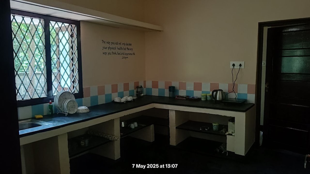 Kowdi Farm House es una acogedora estancia de 2 BHK situada en medio acre de exuberante granja de coco y nuez moscada. Relájate en el estanque natural bajo la luz de la luna, cocina tu comida favorita y termina el día con un descanso tranquilo en el campo.