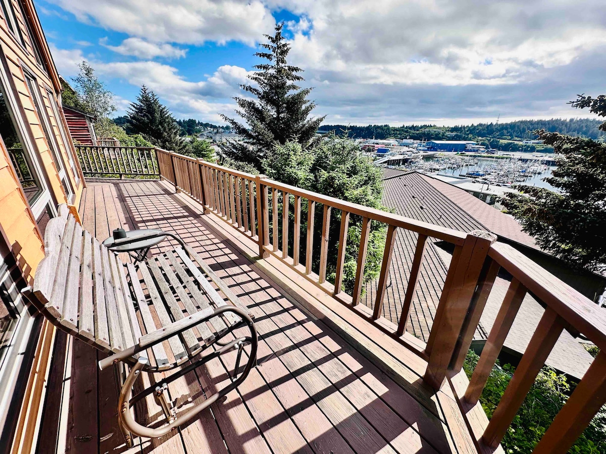 Imagina una escapada privada en una isla de Alaska donde las montañas virtuosas se encuentran con el peligroso mar, la gente es real y el marisco es fresco. En una de las casas cerradas a lo largo de la colina sobre la ciudad, un generoso número de escaleras te lleva a una vista de un millón de dólares, construida en la década de 1940 y remodelada con actualizaciones que te gustarán. Relájate en la terraza, inhala el mar fresco, el puerto pesquero activo y la vida de la ciudad, o caliéntate en la casa torcida pero muy acogedora y hermosa que podría recordarte el "Antiguo Pueblo".