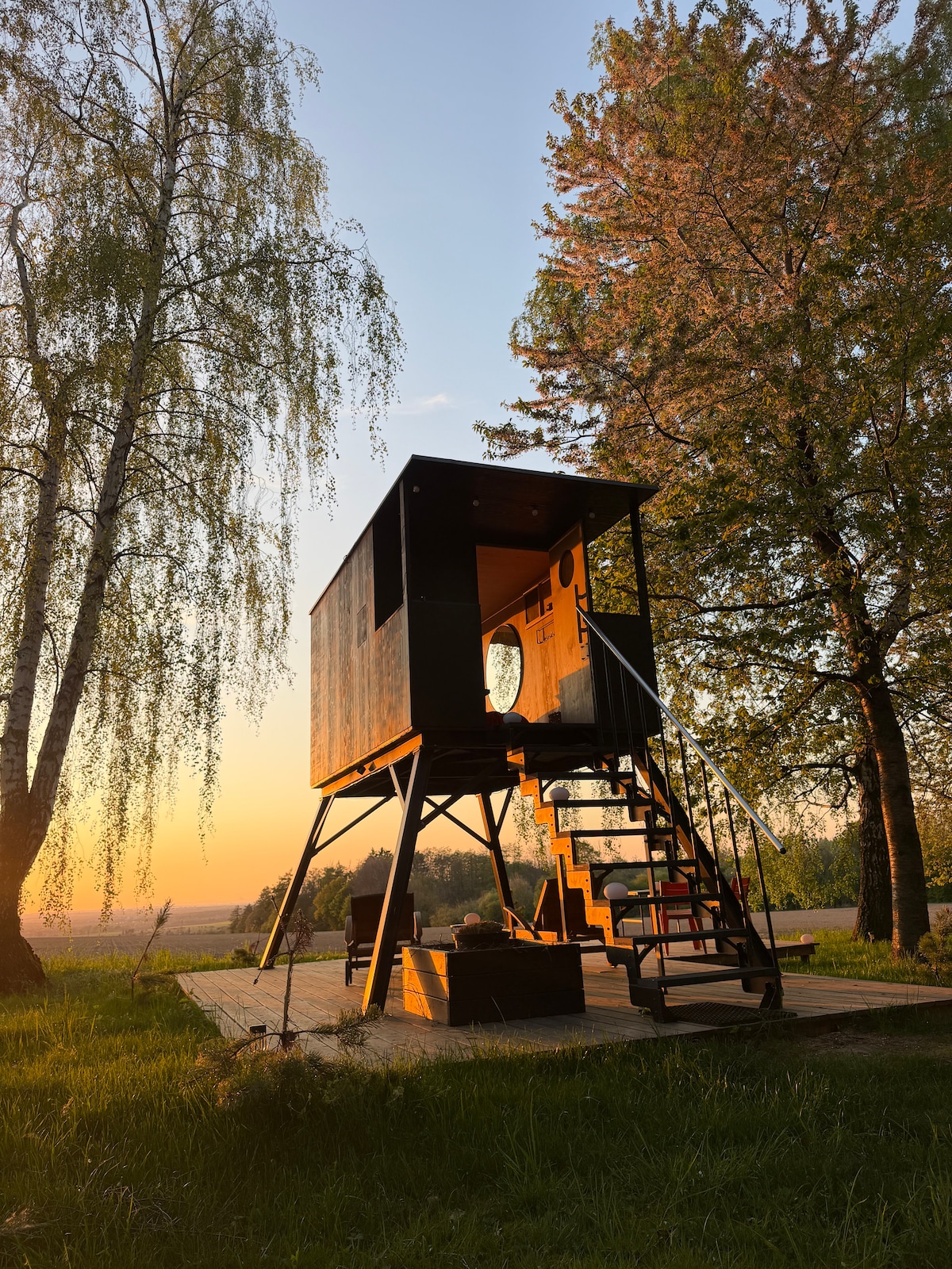 Relájate al aire libre con comodidad En el huerto de cerezos cerca de Kutná Hora, hemos creado un refugio tranquilo para los amantes de la naturaleza que no quieren renunciar a la comodidad. El alojamiento en una tienda de campaña de cuatro metros ofrece un alojamiento cómodo para dos personas. Hay electricidad, agua corriente, una ducha solar y una cocina totalmente equipada con una estufa de gas. El lugar ofrece total privacidad, hermosas vistas y condiciones ideales para una estancia romántica o una estancia con amigos. Disfruta del encantador entorno de este lugar romántico en la naturaleza