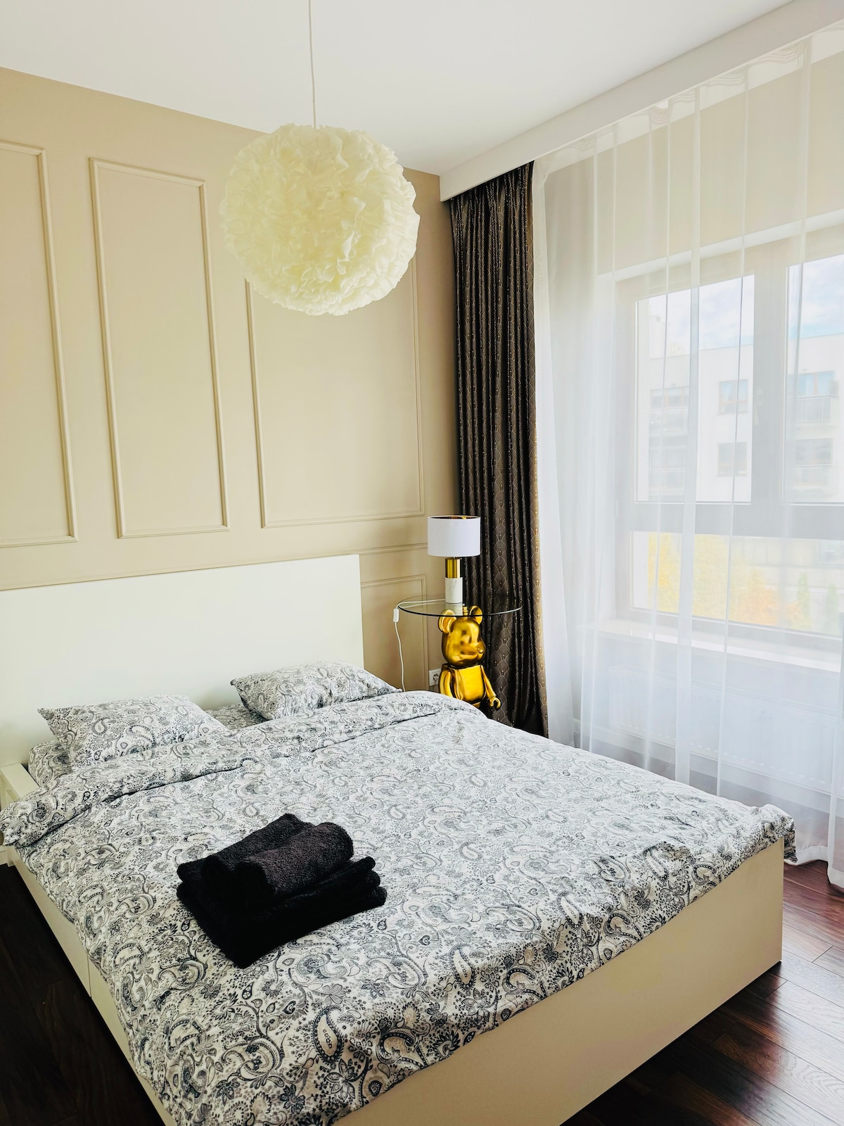 Apartamento cómodo y totalmente equipado en un edificio nuevo. Sala de estar con cocina abierta dividida en comedor y sala de estar. El dormitorio tiene una cama grande y un armario espacioso. También hay un armario como espacio de almacenamiento adicional. En la zona hay tiendas, restaurantes y cafeterías. Equipamiento: aire acondicionado, cafetera, hervidor de agua, plancha, tabla de planchar, lavadora Cómo llegar desde el aeropuerto de Chopin 20 minutos en taxi 50 minutos en transporte público desde el aeropuerto de Modlin 50 minutos en taxi 120 minutos en transporte público