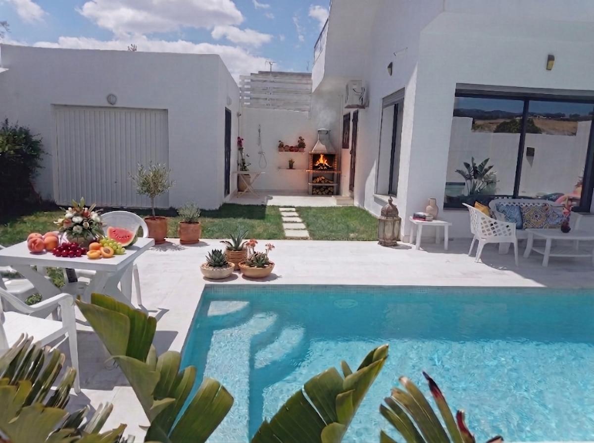 Villa in the calmest spot of Hammamet with a huge garden and big PRIVATE pool and patio. Equipped with a full list of amenities, stylish design and decor for a magnificent stay in the calm side of the mountain of Hammamet. Fire place in the living room and a fire pit in the garden for a warm moment with family and friends. Located in between Only 5 minutes drive to downtown and the beach and 5 minutes to the highway leading to Tunis and Nefidha Airport. A Padel tennis court is just few steps.