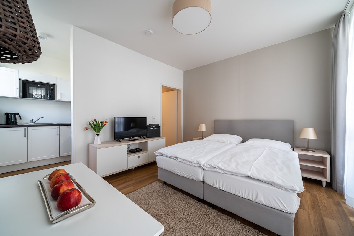 Hola en el apartamento de dos personas. Aquí podéis con máx. 2 personas en 41 metros cuadrados, en un ambiente elegante y acogedor para descansar. Por la mañana, disfrute de su desayuno en la terraza o en la cocina totalmente equipada, por la noche, su barbacoa en la zona de barbacoa. Cuando haga mal tiempo, podéis poneros cómodos en el sofá frente al televisor inteligente de 50" o leer vuestro libro favorito en la mecedora. En la cama king size box spring podréis descansar para empezar el día siguiente recuperados. Paquete de ropa de cama incluido