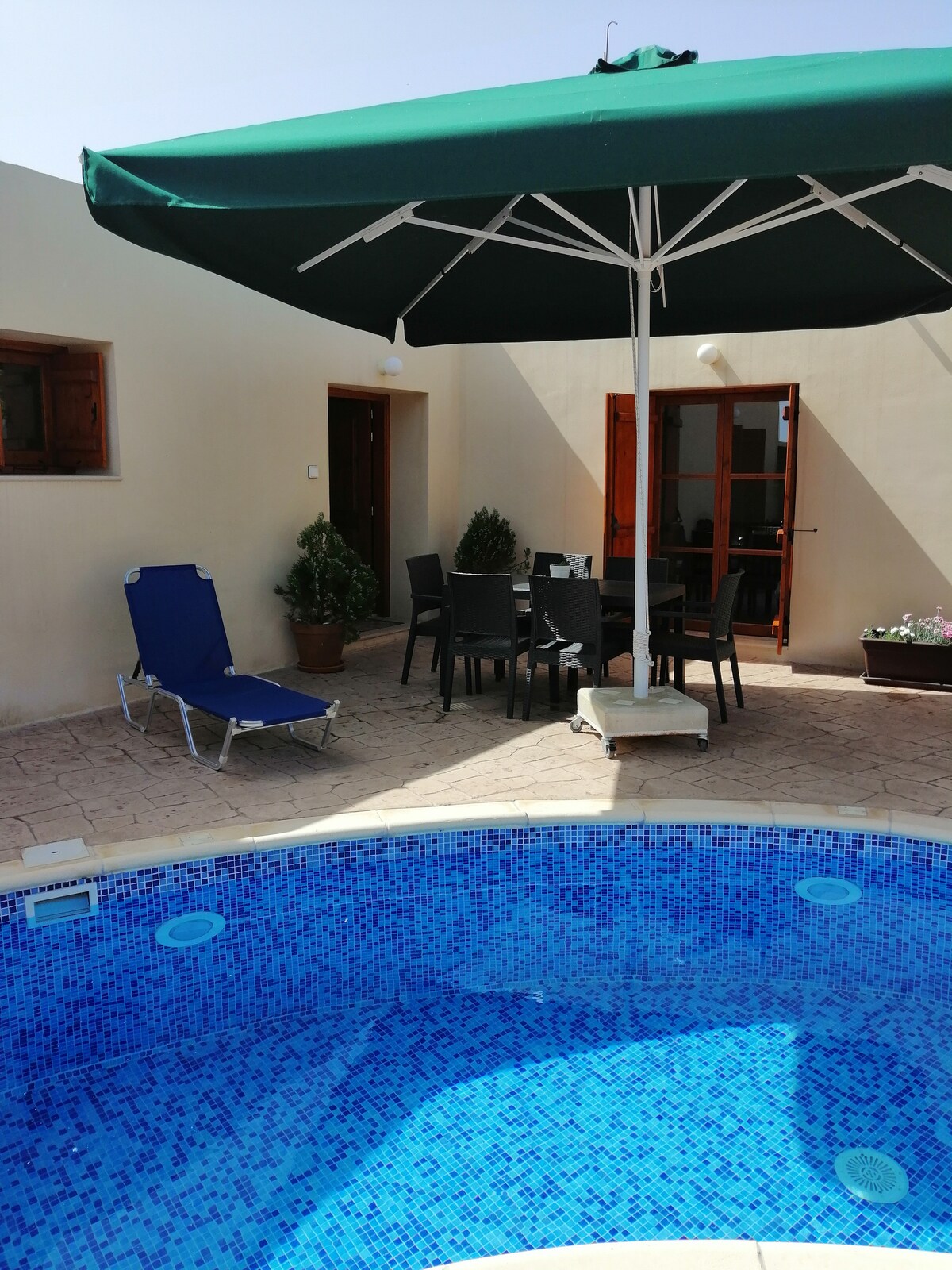 Fontana Traditional House se encuentra en el pueblo de Anarita. Está totalmente renovado en enero de 2018. La casa fue construida con piedra afuera y madera alrededor de la casa. Hay 2 dormitorios, la cocina está unida con sala de estar y baño. La cocina está totalmente equipada. Fuera puedes encontrar un gran paraguas con una mesa. Una barbacoa y ollas con flores. También la estacionamiento es privada. La piscina está en medio del patio.