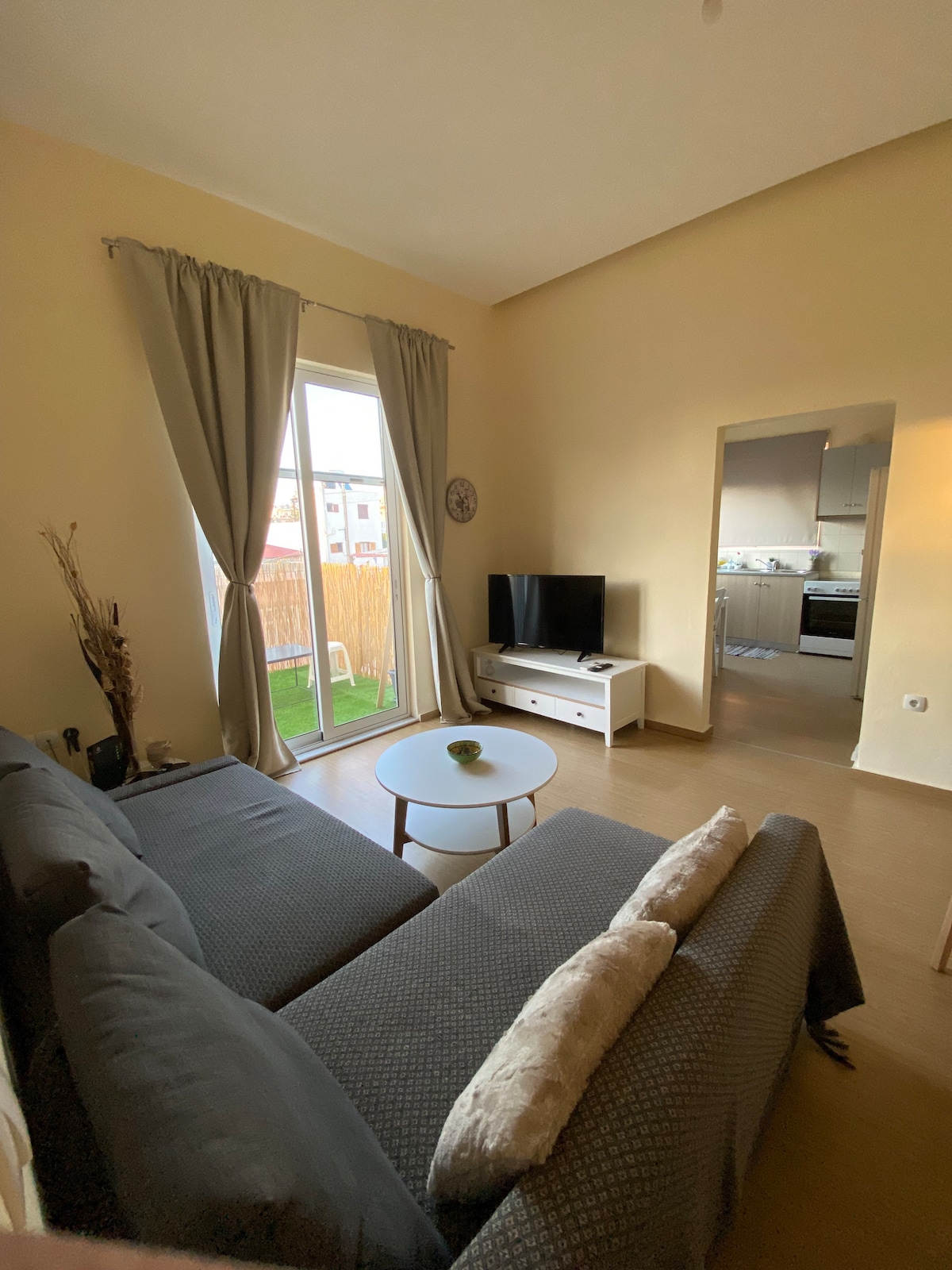 Da un relajante paseo por la orilla y luego comparte unas copas nocturnas en la mesa de bistró en el acogedor patio trasero de este soleado oasis en la planta baja. Relájate en la mecedora Acapulco color crema antes de preparar un aperitivo en la elegante cocina gris. La casa está en la planta baja y es adecuada para parejas y familias. El interior está debidamente organizado con una cocina totalmente operativa, una sala de estar con mesa de comedor, 1 dormitorio y 1 baño privado. También está equipada con todos los utensilios necesarios, servicios y mucho más. El apartamento se ubica en la planta baja. Te esperaremos en la casa a tu llegada para darte la bienvenida, mostrarte la casa y entregarte las llaves. Además, te proporcionaremos un mapa de la ciudad y te sugeriremos lugares agradables para visitar y actividades. Durante tus vacaciones estaremos siempre disponibles en caso de que necesites ayuda con cualquier cosa. La tranquila y silenciosa Chalepa tiene una rica historia, con hermosas mansiones neoclásicas antiguas y es considerada el barrio más aristocrático de La Canea. A pocos minutos de la casa hay una pequeña playa rocosa que parece una piscina. Hay una parada de autobús cerca, a solo 2 manzanas de distancia, que da servicio a los autobuses Sodi y Chalepa, que van y vienen del centro de la ciudad. Muy cerca de esta parada de autobús hay una estación de taxis. De lo contrario, siempre puedes venir en coche. Hay muchas plazas de aparcamiento gratuitas disponibles justo al lado del apartamento. Para reservas de más de 10 noches, ofrecemos a nuestros huéspedes una limpieza adicional y un cambio de sábanas del apartamento de forma gratuita. La tranquila y silenciosa Halepa tiene una rica historia, con hermosas mansiones neoclásicas antiguas y es considerada el barrio más aristocrático de La Canea. A pocos minutos de la casa hay una pequeña playa rocosa que parece una piscina.