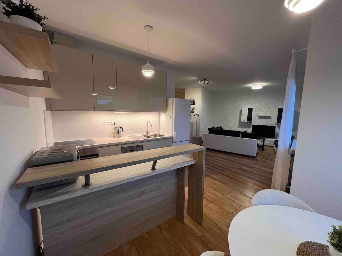 El apartamento de lujo y moderno Die Oase se encuentra en un edificio nuevo en una parte popular de Bratislava (a 10 minutos del centro). Aparcamiento privado gratuito, MDH justo al lado del edificio, supermercado Lidl a 1 minuto a pie, excelente conexión a la autopista, centro comercial Avion. El apartamento dispone de una cama de matrimonio extragrande, persianas eléctricas modernas, una gran bañera de hidromasaje redonda con iluminación y un televisor de plasma de gran tamaño. Entrada sin barreras al edificio + ascensor.