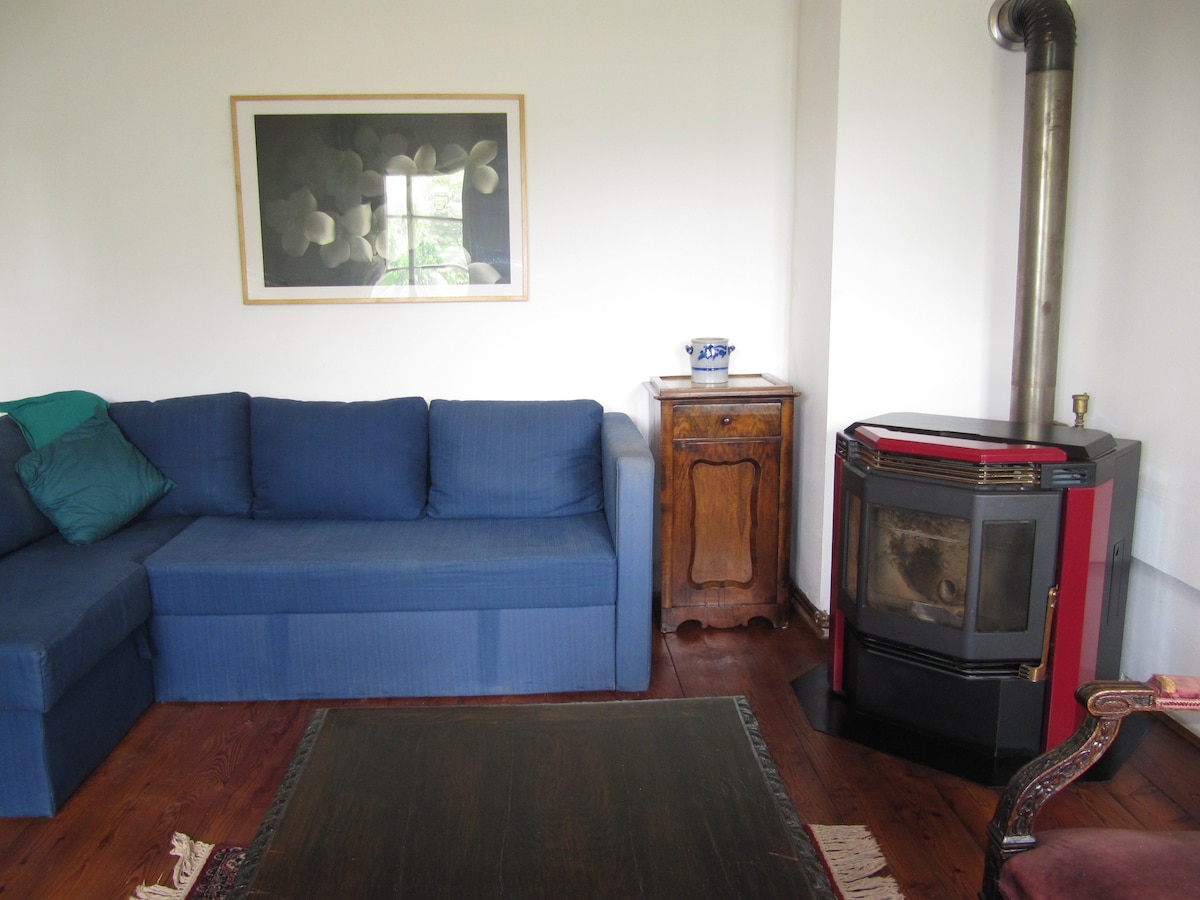 Disfruta de la paz y la naturaleza en nuestro apartamento vacacional de 60 m², ideal para parejas o familias pequeñas. Ofrece un dormitorio con cama tamaño king, sala de estar con sofá cama y estufa sueca, cocina totalmente equipada y un baño con ducha a ras de suelo y bañera. El apartamento está ubicado sobre el garaje en una casa separada con vistas al jardín y al bosque. Krems está a solo 10 minutos. El impuesto de pernoctación en Baja Austria es de 2,50 € por persona y noche a partir de los 15 años y se cobra en efectivo en el sitio.