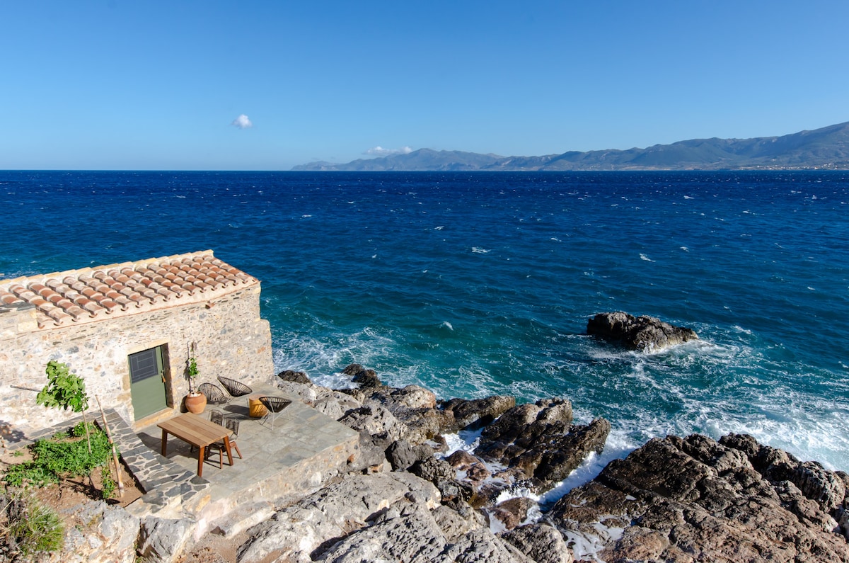Bienvenido a Almi Guesthouse, una pequeña joya, literalmente en el mar. La casa de huéspedes consta de un solo espacio abierto con un techo abovedado tradicional y un baño, un total de 18 metros cuadrados. En el exterior hay un pequeño patio pavimentado que conduce al borde de las rocas. El edificio fue reconstruido en 2019 y se encuentra en la parte inferior de la carretera que conecta el puente con las puertas del castillo, cerca de Kourkoula, una piscina natural.