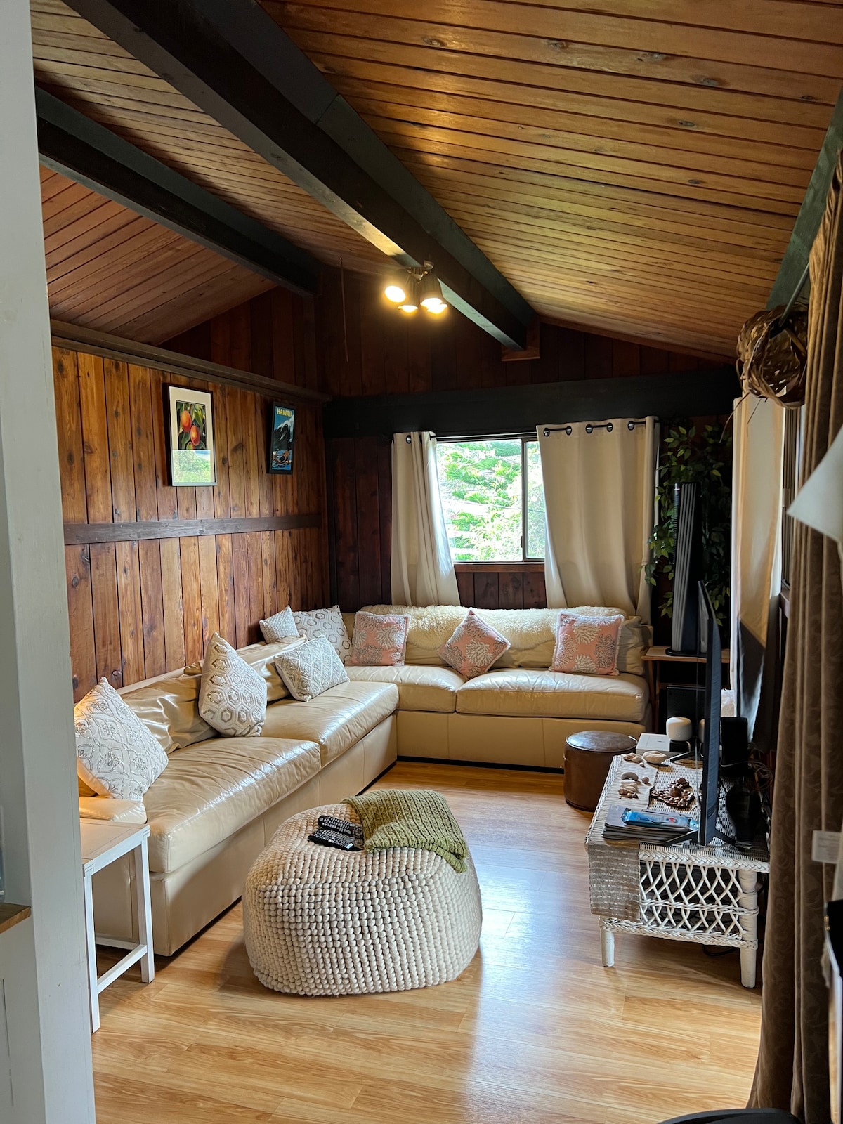 Este maravilloso alojamiento es para el amante de la naturaleza que disfruta del lujo. Cuenta con una hermosa terraza con vistas a majestuosos árboles altos y un exuberante follaje verde con una romántica bañera de inmersión para dos. En el centro de la habitación hay una cama tamaño king hecha a medida con madera de cerezo y adornada con ropa de cama de lujo. Hay una cocina completa y un comedor con vistas a un lugar tranquilo para compartir una comida. Este es el verdadero estilo hawaiano donde podrás disfrutar de una vida isleña cómoda, elegante y relajada.