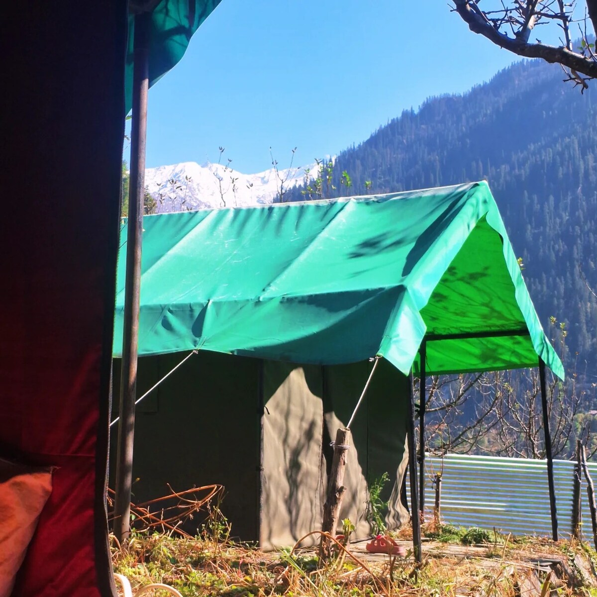 Reserva todo el camping privado Vintage Vista, ideal para grupos y familias que viajan juntas. Este anuncio incluye las 4 carpas privadas de la propiedad, que ofrecen una estancia en grupo cómoda y exclusiva cerca de Kasol. Cada tienda de campaña cuenta con ropa de cama limpia y un baño privado anexo. Los huéspedes pueden disfrutar de áreas comunes compartidas, como el jardín, la zona para fogatas y el comedor. Rodeado de naturaleza, el camping es perfecto para escapadas relajadas en grupo y veladas inolvidables.