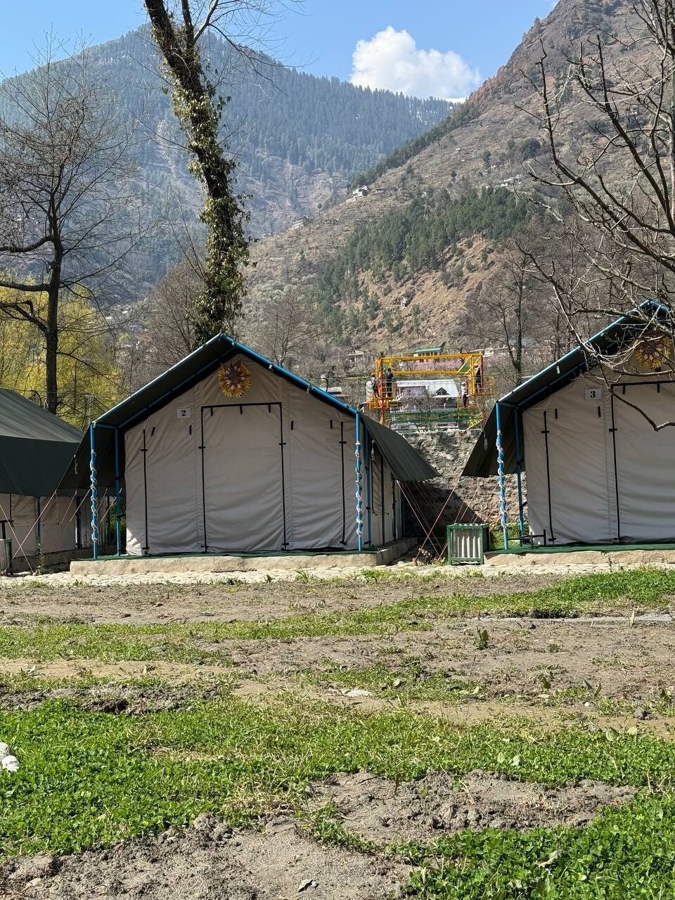 Nestled along the riverside, you’ll wake up to the soothing sound of flowing water and breathtaking mountain views. The property is surrounded by lush greenery, fresh air, and open skies — ideal for guests looking to unwind and disconnect from busy city life. Our property features 6 identical luxury tents, thoughtfully designed to provide a unique glamping experience in the heart of the mountains — making them perfect for couples, families, or small groups traveling together.