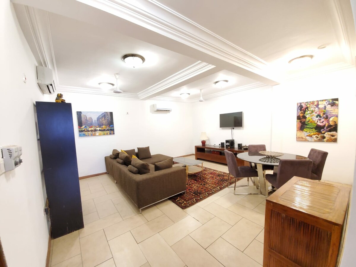 Nuestro amplio,limpio y cómodo apartamento de 2 dormitorios está en el segundo piso, seguro con ventilación natural en el corazón de Kumasi. Básicamente a 5 minutos en coche de todos los lugares principales de Kumasi, incluido un hermoso campo de golf. Cada habitación ha sido cuidadosamente diseñada para la comodidad y las camas se han colocado con sábanas de algodón frescas. Este apartamento es perfecto para parejas, familias y amigos. También hay personal disponible para ayudar con la limpieza, los servicios de lavandería y bricolaje con un bajo cargo adicional.
