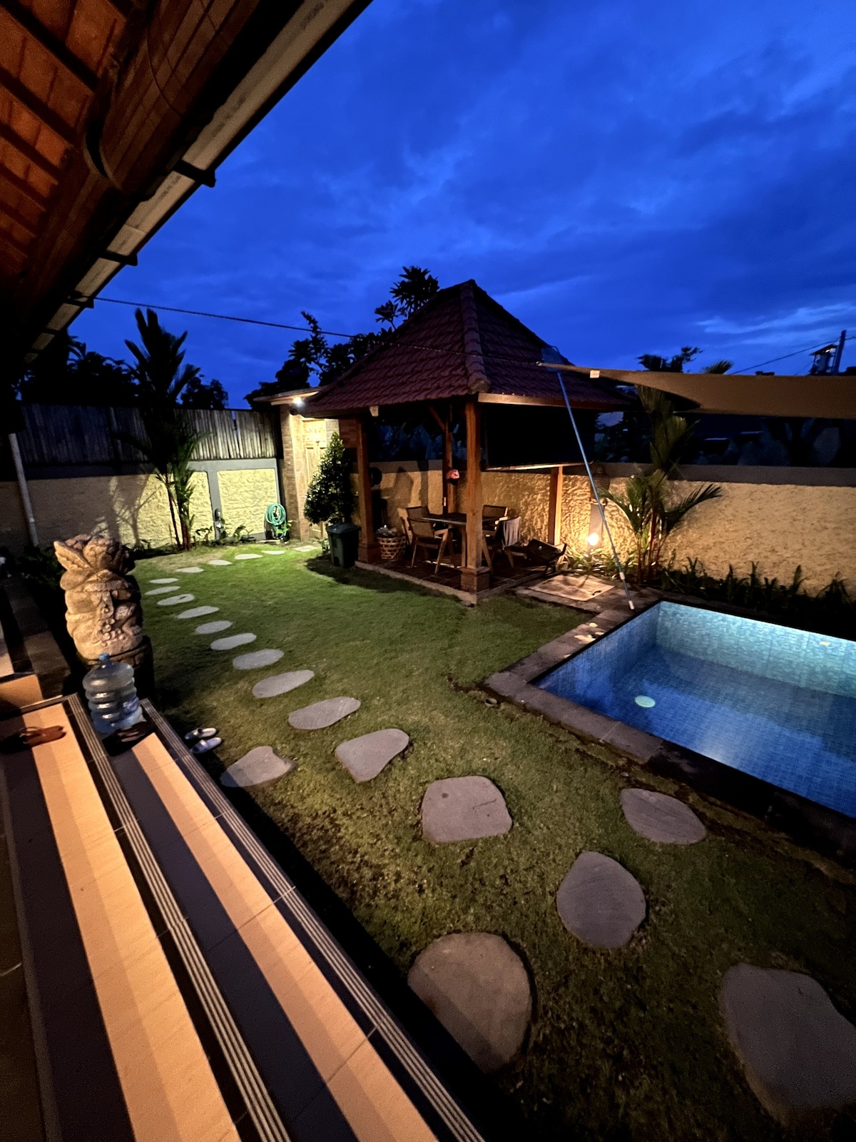Brand New Tropical Villa in the Heart of Canggu • 2 stylish air-conditioned bedrooms with jungle views • En-suite bathrooms with amenities, slippers & hairdryers • Large pool surrounded by greenery for lounging & BBQs • Sleek minimalist layout with open-plan kitchen & dining space • 300 Mbps Wi-Fi for work or streaming • PS5, Netflix on request • Baby cot & high chair on request • Daily cleaning with fresh towels & linens • Concierge service for spa bookings, scooters, surf lessons & more