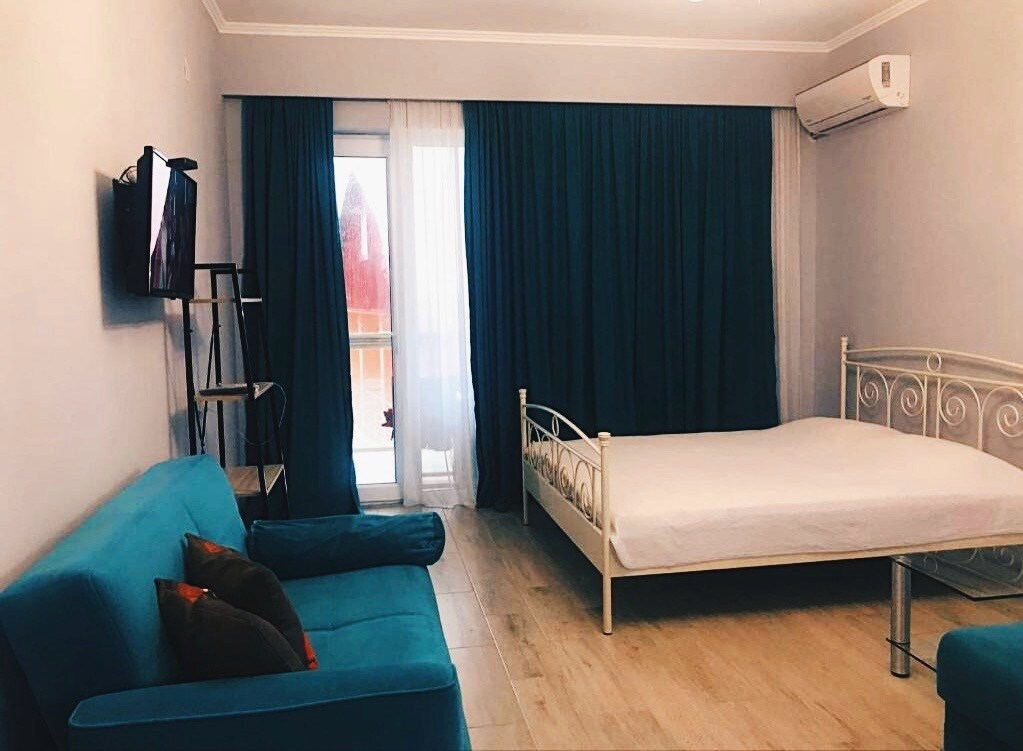 Acogedor apartamento tipo estudio renovado (44 metros cuadrados)con balcón,con todas las comodidades y accesorios necesarios en la pintoresca y ecológica zona turística de Kvariati. Excelentes vistas, playa propia,restaurantes y cafeterías(temporada de verano). Utensilios de cocina,nevera, microondas El precio incluye: estancia de 2 huéspedes(1 día), toallas wifi, accesorios de baño/inodoro, ropa de cama. Pago separado - transferencia Tiflis/Batumi (Kutaisi/Batumi) y de vuelta.
