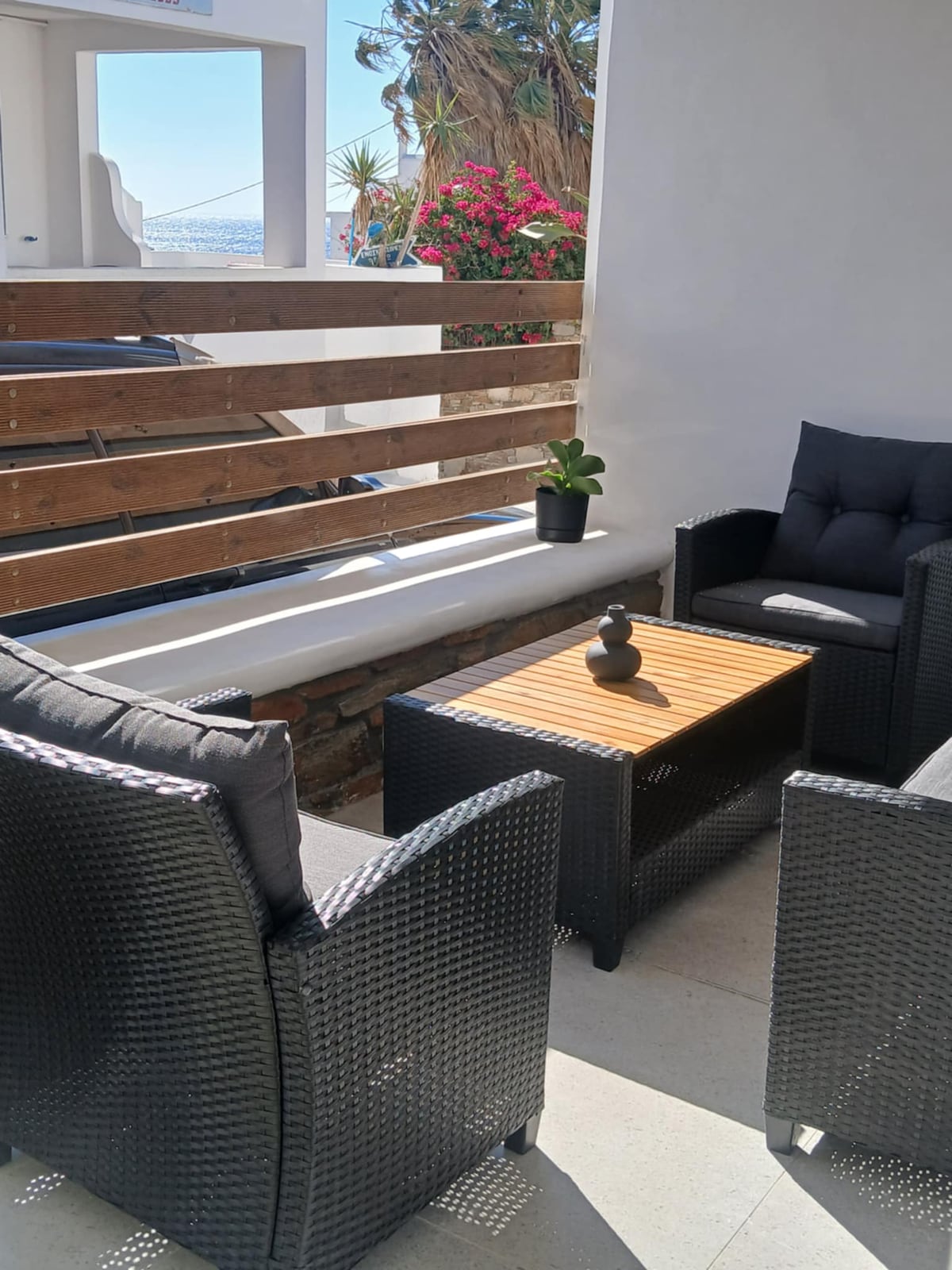 Excepcional área de piscina con vistas de 360 ° junto al puerto de Merichas La propiedad tiene un patio privado alrededor de la casa con una impresionante mesa de comedor al aire libre donde puedes tomar tu café de la mañana o puedes disfrutar de tu almuerzo o cena junto con la vista panorámica del puerto de Merichas. ¡El cambio de sábanas y toallas cada 3 días está incluido en el precio!