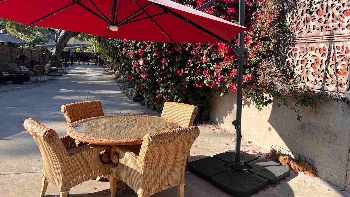 - Comedor al aire libre, cortafuegos, cocina completa. - Cerca de Rose Bowl, Downtown, Hollywood, Shows, Universal Studios - Jardines y caminatas en la naturaleza - Wifi increíblemente rápido. Para aprovechar al máximo Los Ángeles, no es necesario quedarse en la ciudad. Después de un ajetreado día de aventuras, retírate a tu suite privada lejos del bullicio de la ciudad. Refréscate en la piscina, relájate en el jacuzzi o disfruta de una comida increíble en tu patio al aire libre con amigos o familiares.